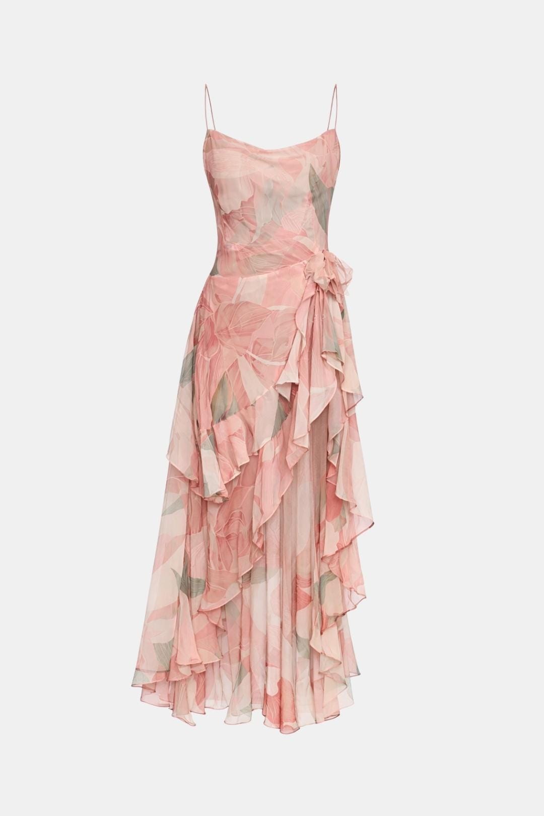 Leanne - Open Back Ruffle Slit Long Dress