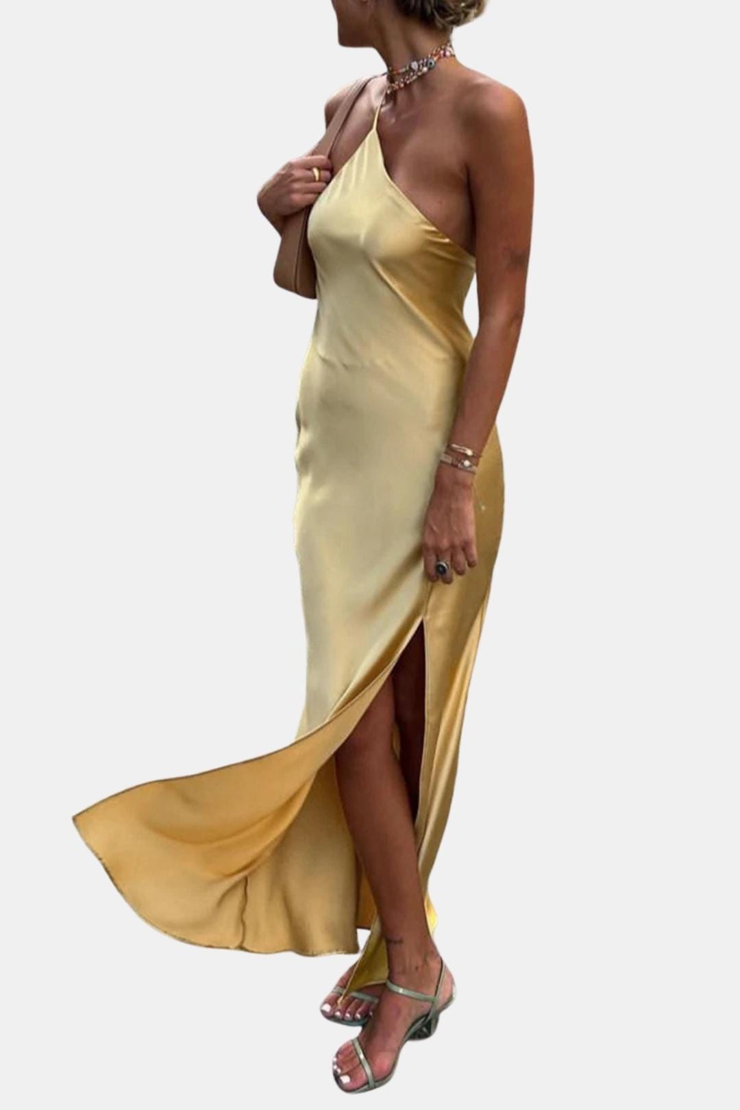 Sofiya – One Shoulder Satin Slit Long Dress