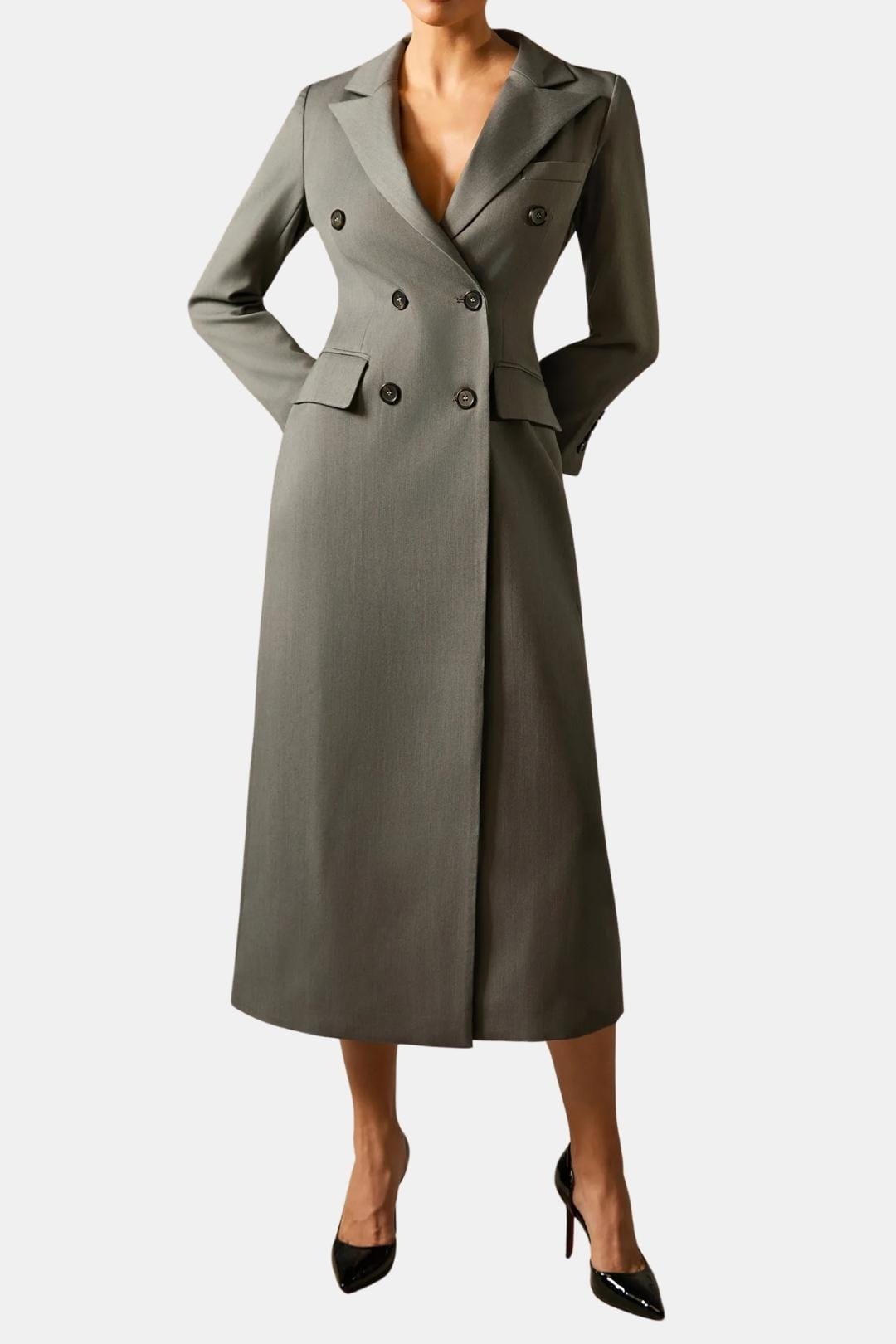 Khloe – Double-Breasted Peak Lapel Long Coat
