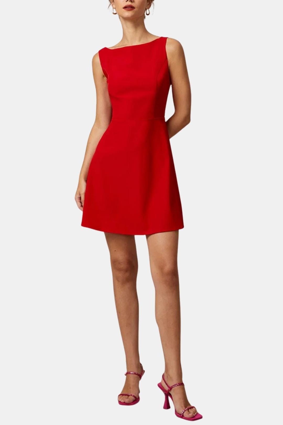 Nerissa – Boat Neck High Waisted Mini Dress