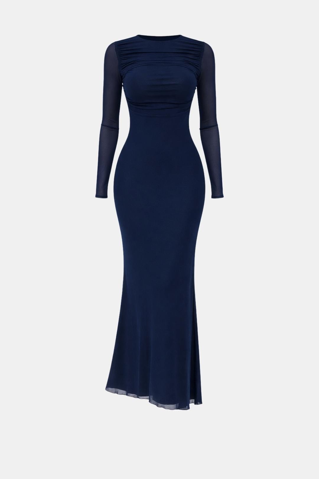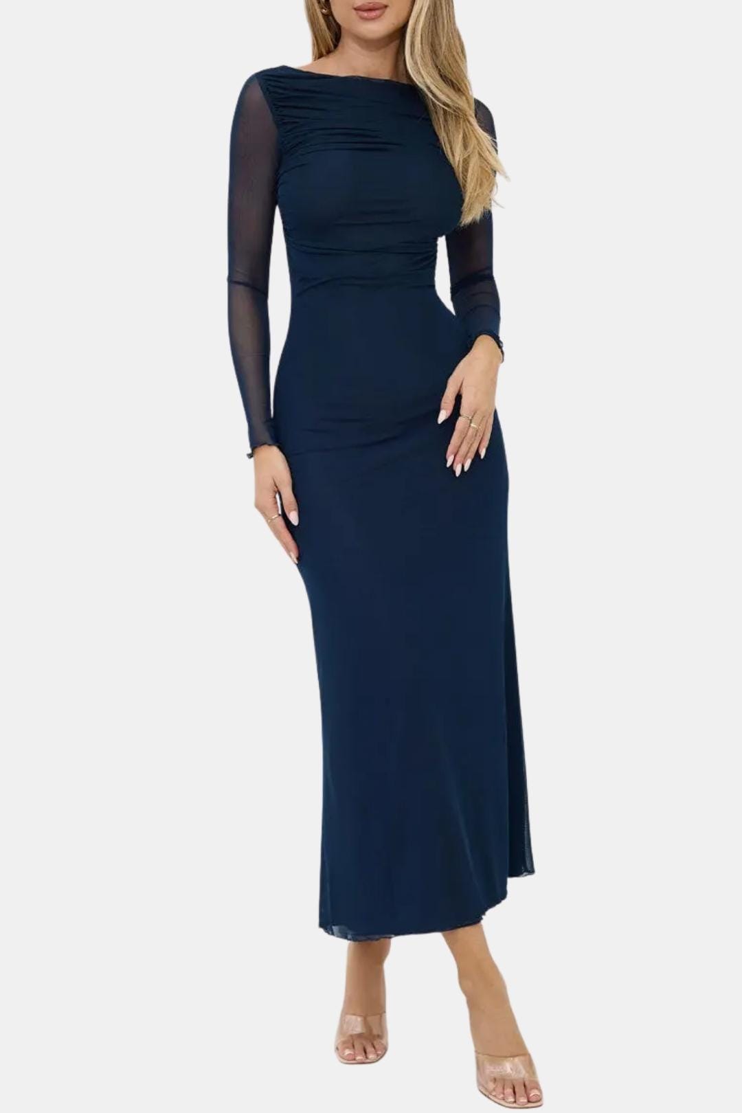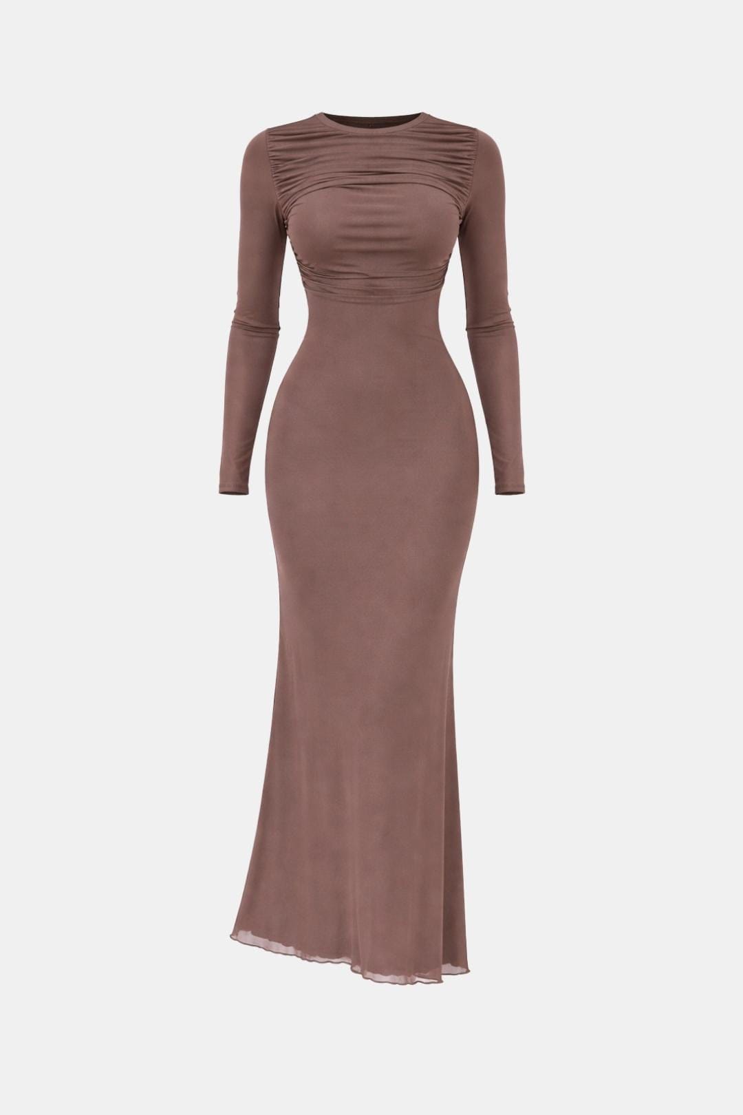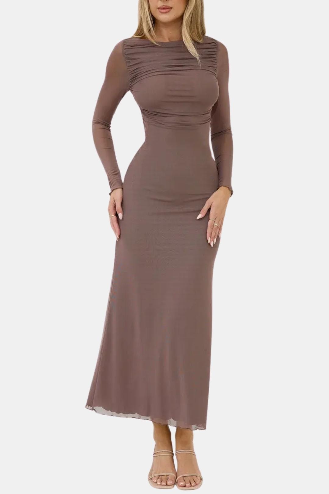 Meet Emberly — a sleek long sleeve maxi dress designed to contour the body with effortless elegance. Featuring soft ruching through the bodice and a clean, elongated silhouette, Emberly delivers a timeless look that feels modern and refined.