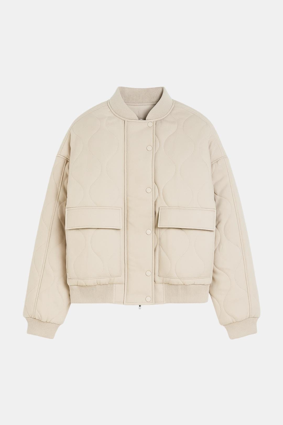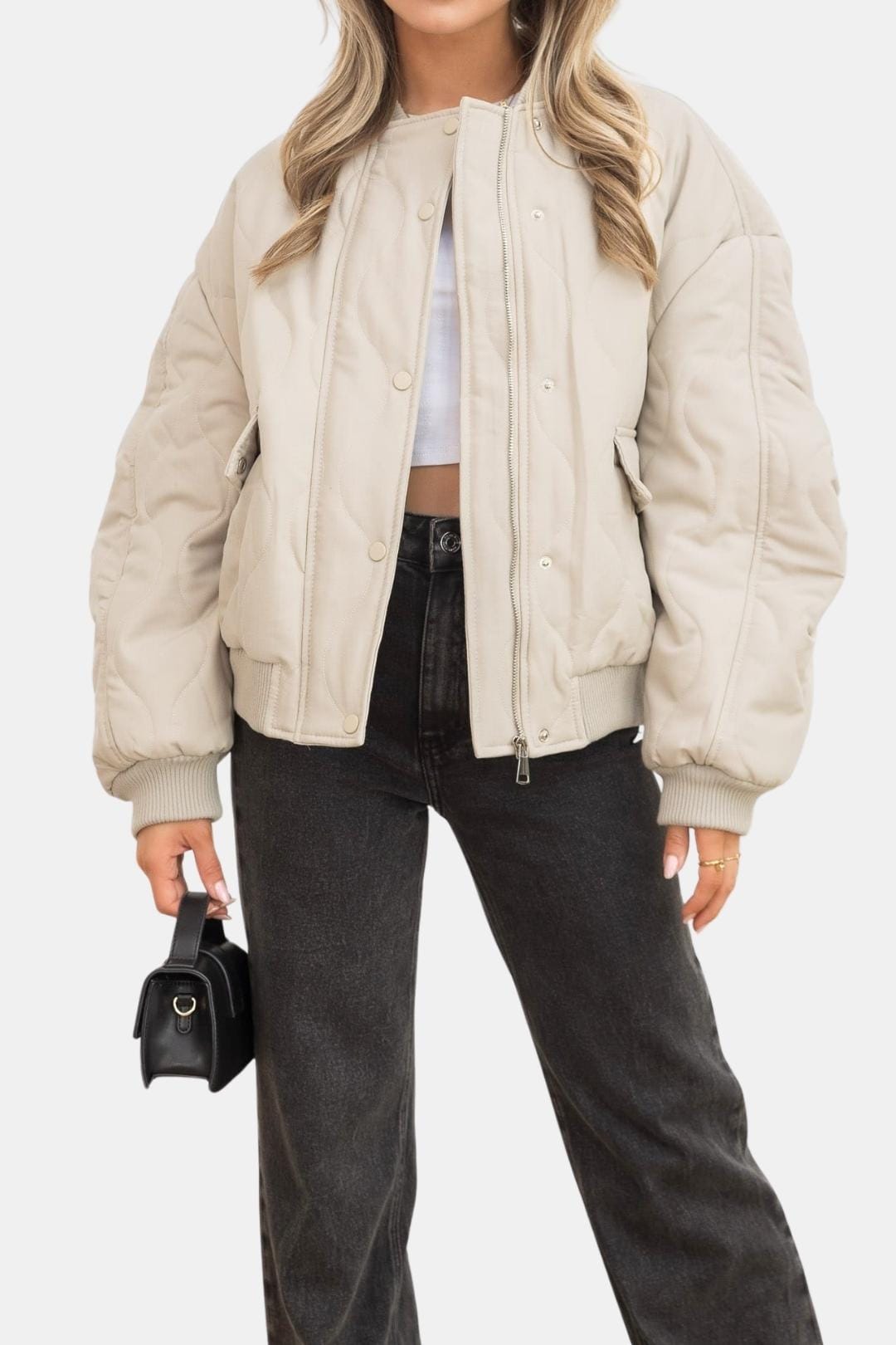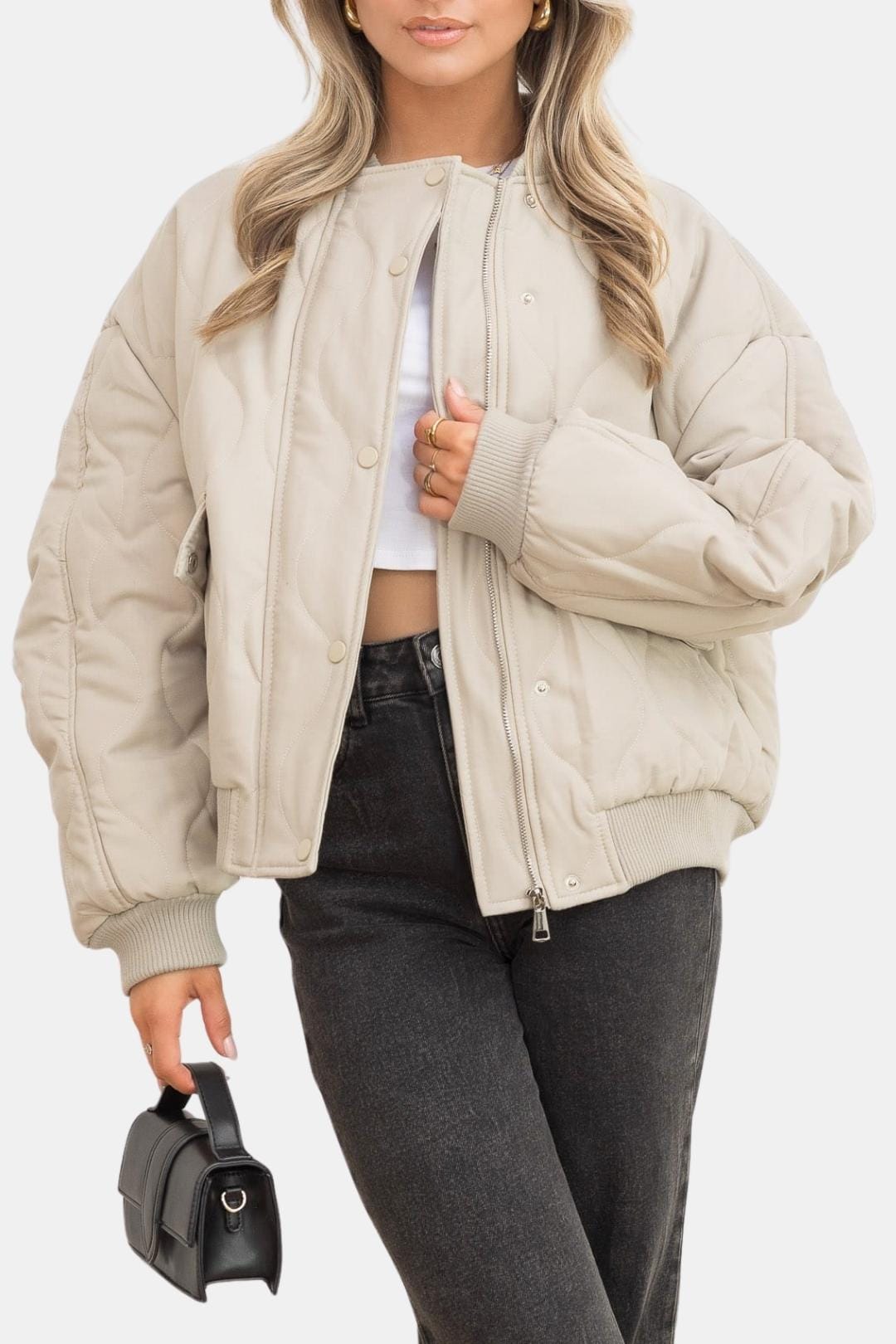 Brooke – Minimalist Quilted Bomber Jacket in Beige