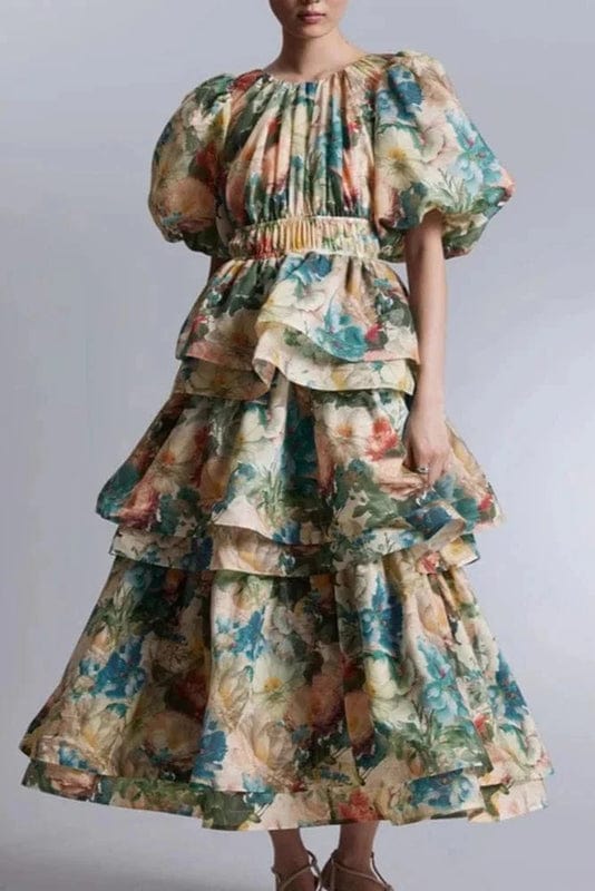 The Gilda- Ruffle Sleeve Maxi Dress in Multicolor brings a touch of Mediterranean elegance to your wardrobe. With its vibrant hues and flattering ruffle sleeves, this dress is perfect for summer days, evening events, or any occasion where you want to feel both stylish and comfortable.