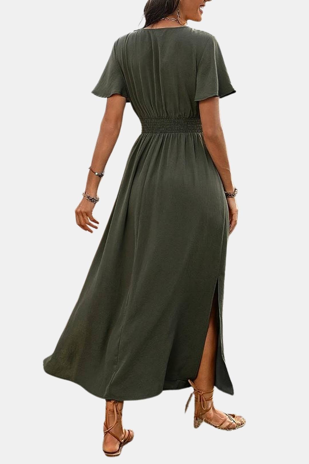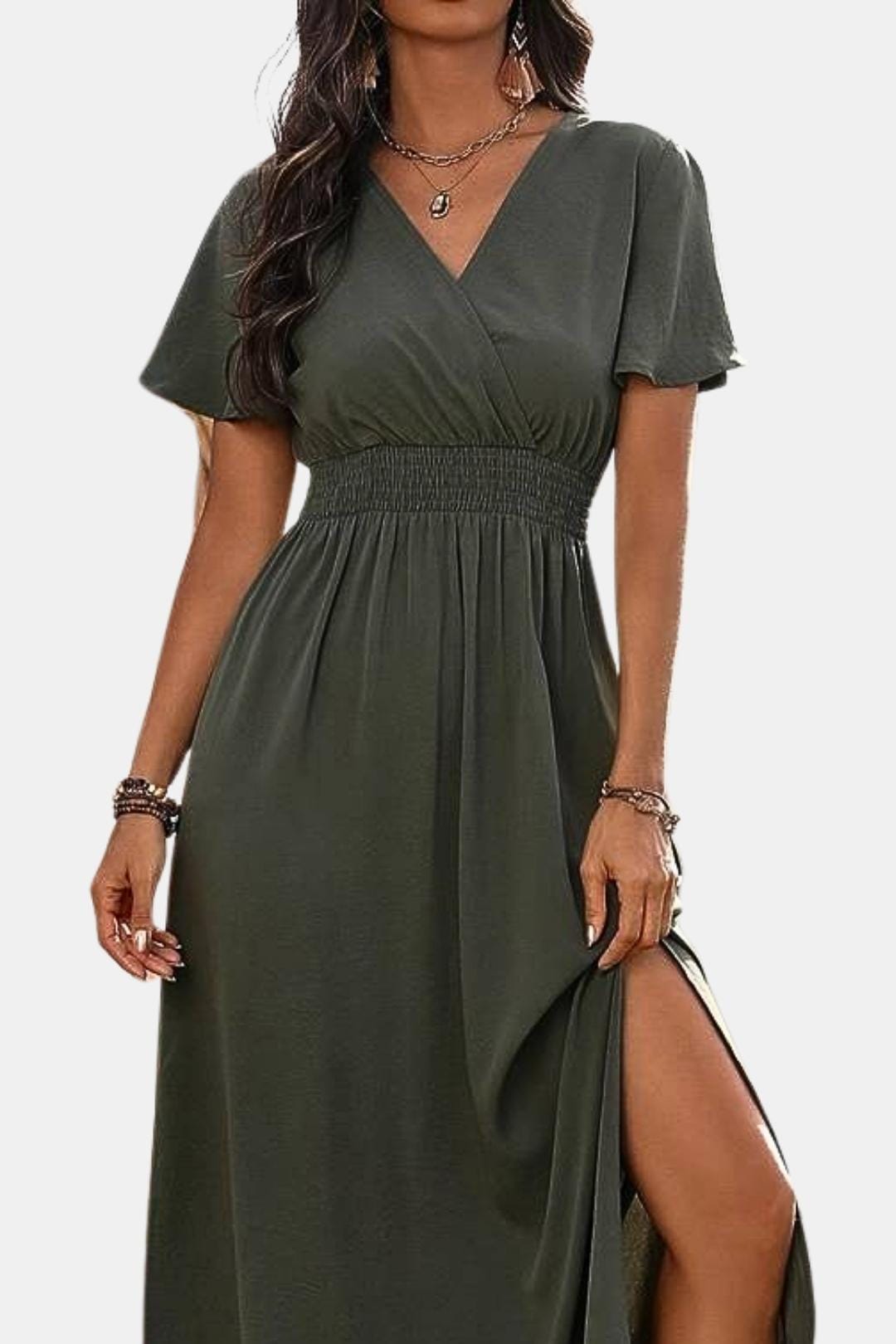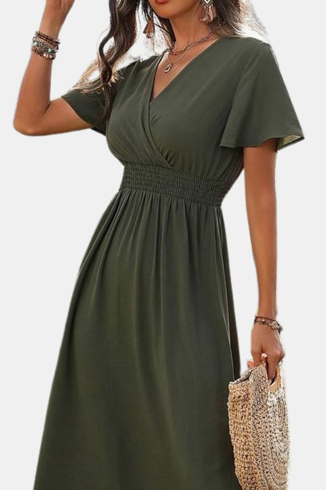 Johanna – Green Short-Sleeve Wrap Summer Dress