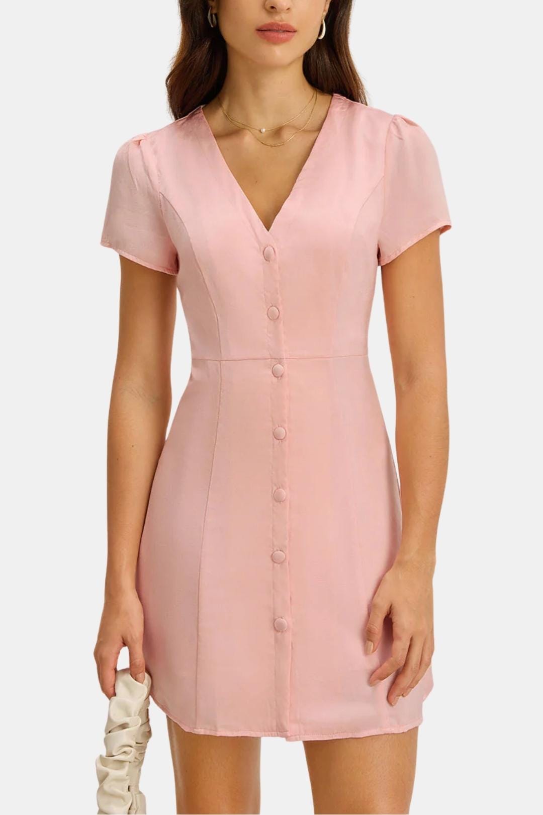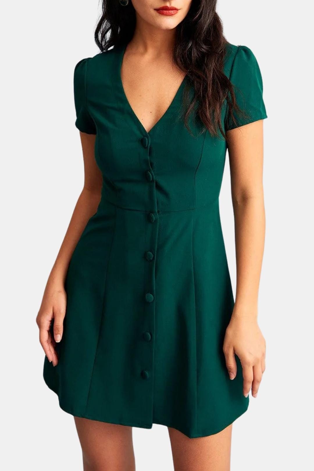 Meet Lianne — a polished shirt-style mini dress designed with a flattering V-neckline and clean button-up front. Structured yet effortless, Lianne offers a timeless silhouette that transitions seamlessly from day to evening.