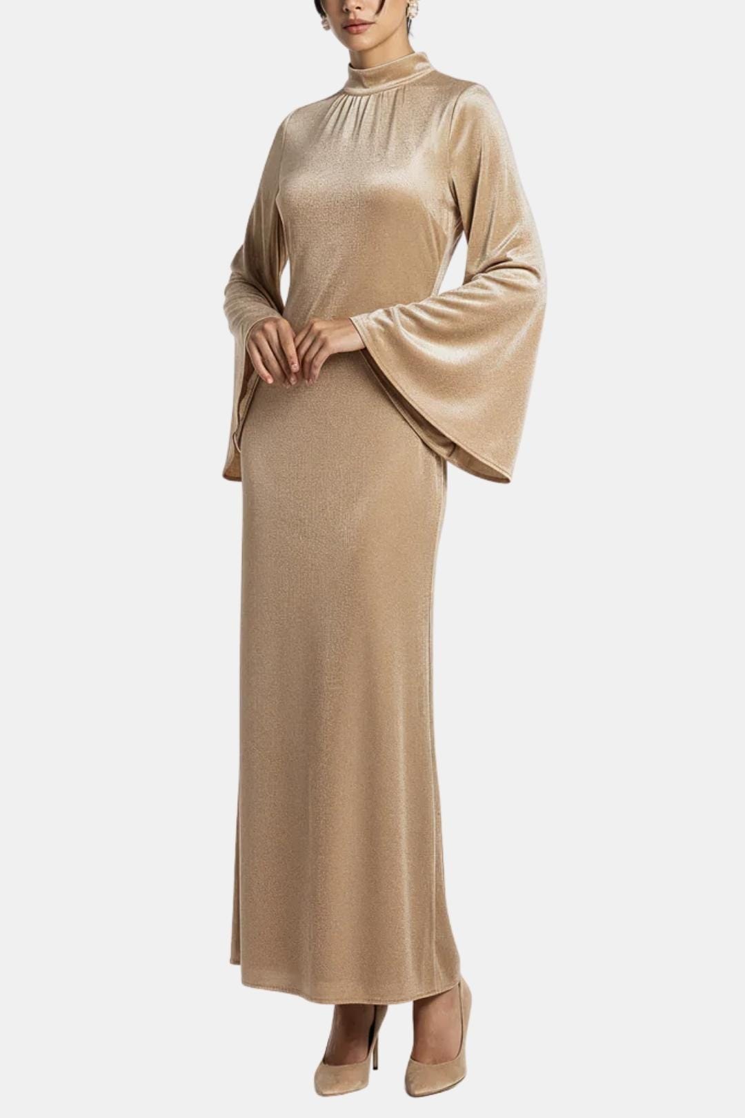 The Safiya Abaya Dress is designed for serene Ramadan evenings and elegant celebrations. Crafted from soft, lightweight velvet with a subtle sheen, this Abaya Dress flows beautifully over the body, offering full modest coverage with a graceful, feminine silhouette. Its refined structure and fluid drape make it an effortless choice for iftar gatherings, special occasions, and evening events where understated luxury is key.