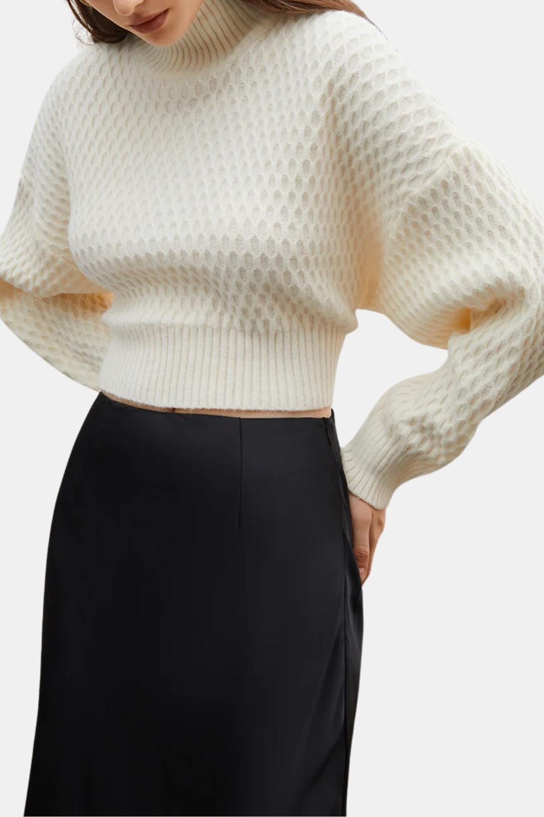 Practicality: The mock neck and long sleeves provide warmth and structure while balancing the open design beautifully.