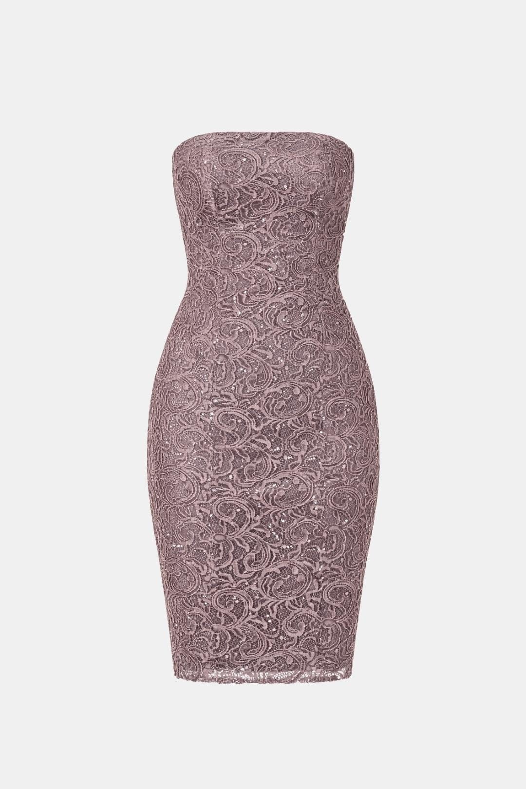 Greta – Mocha Strapless Lace Mini Dress
