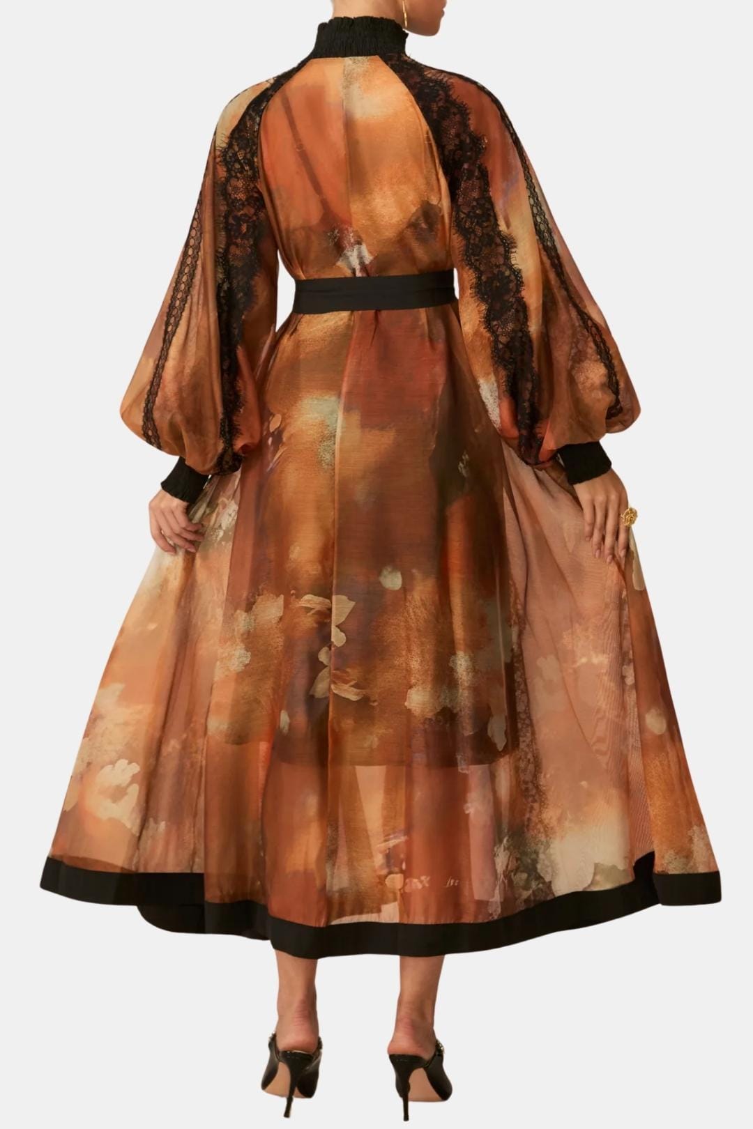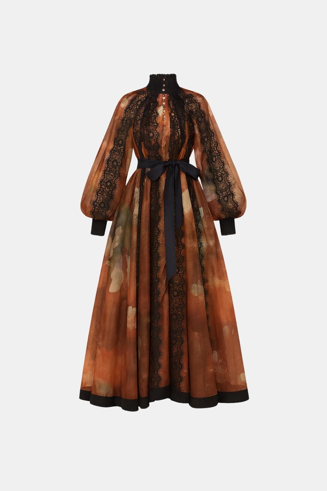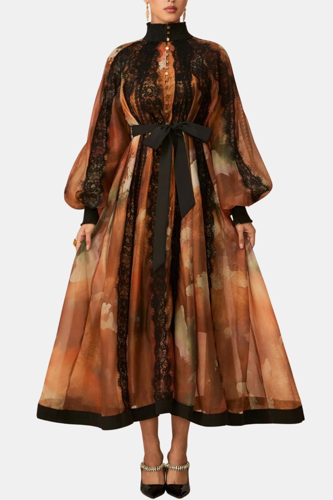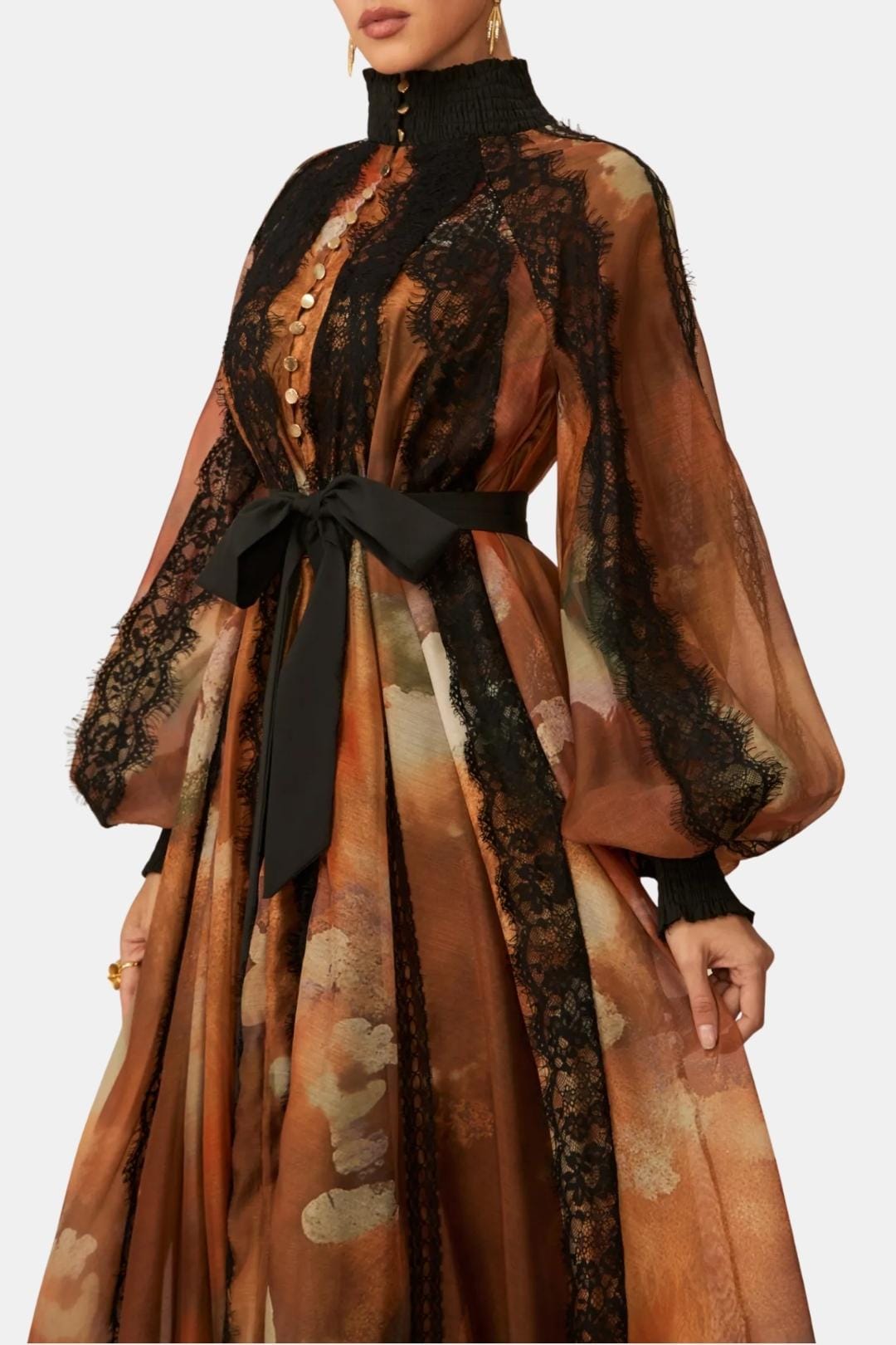 Oaklee – Autumn Luxe Lace & Chiffon Midi Dress