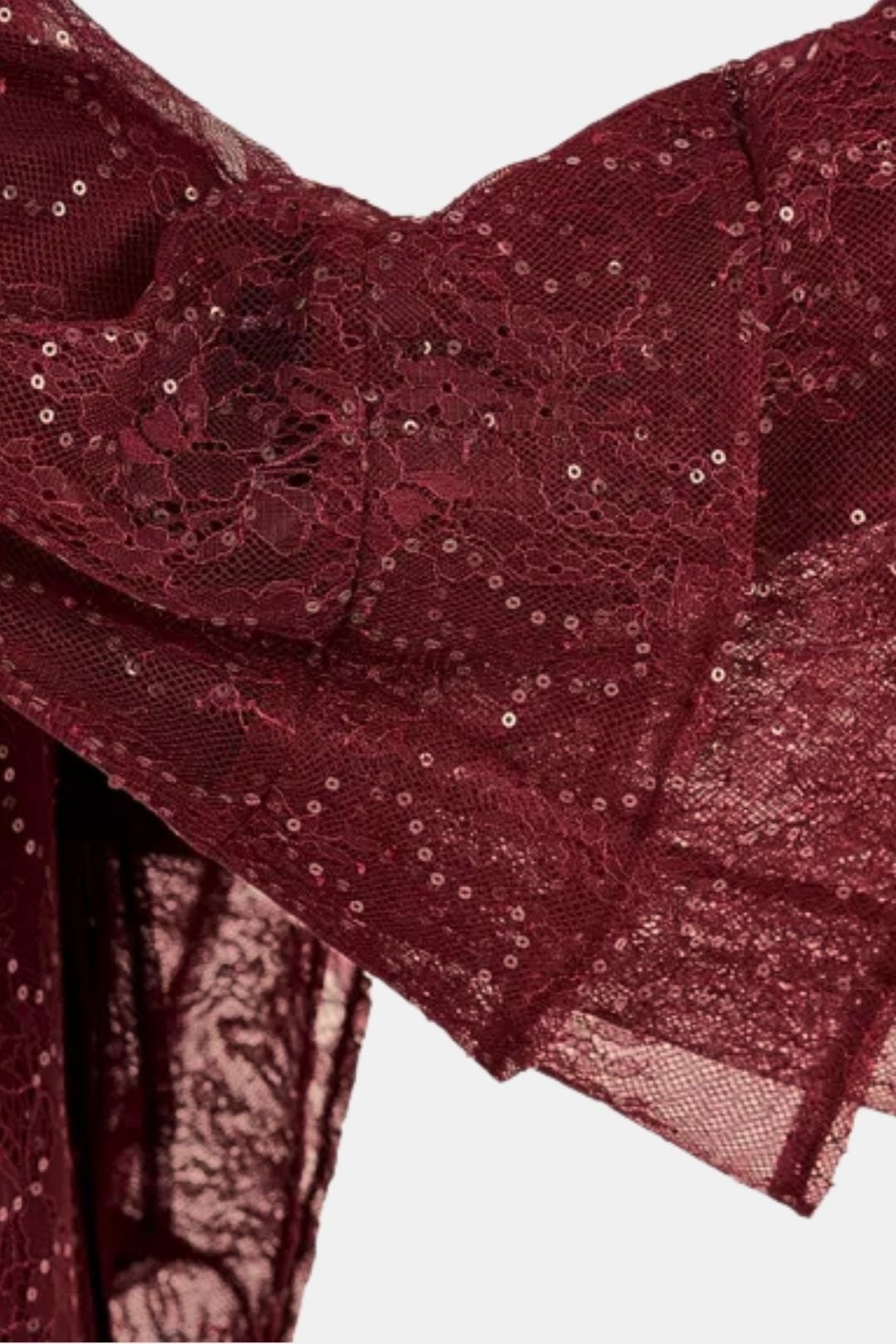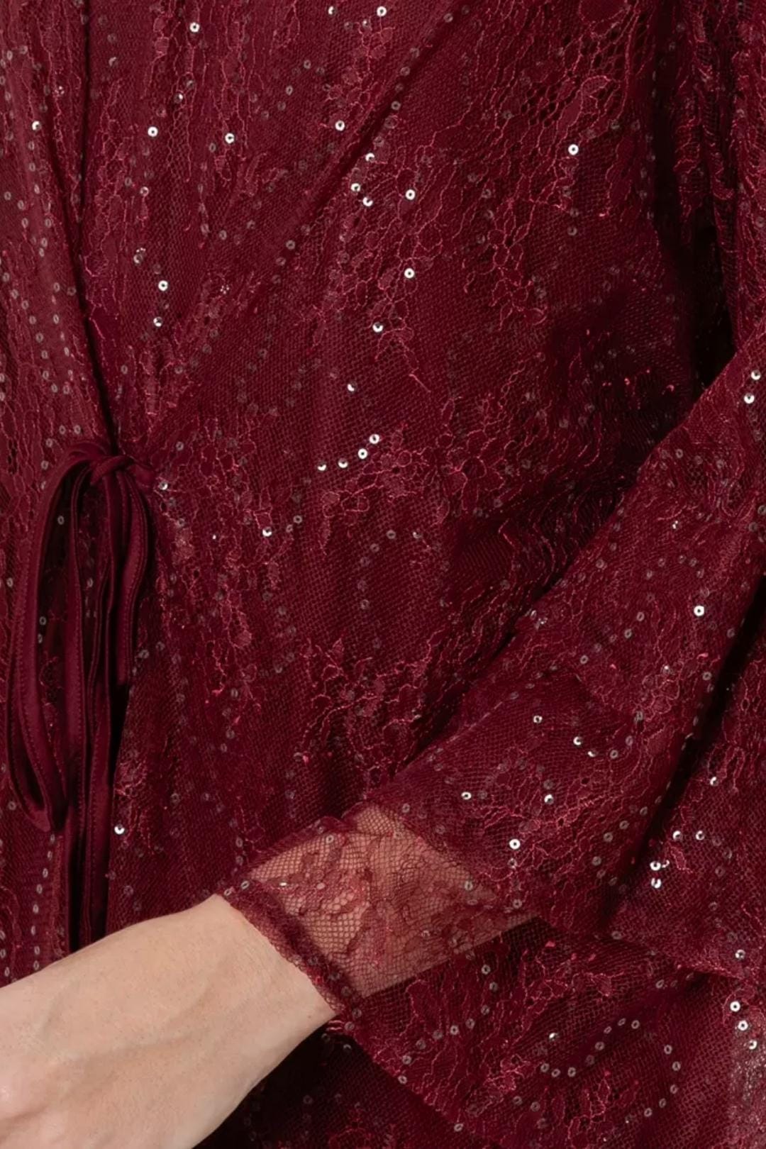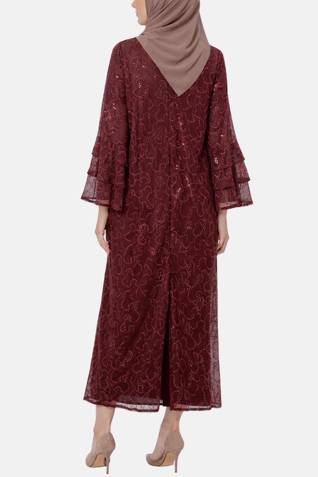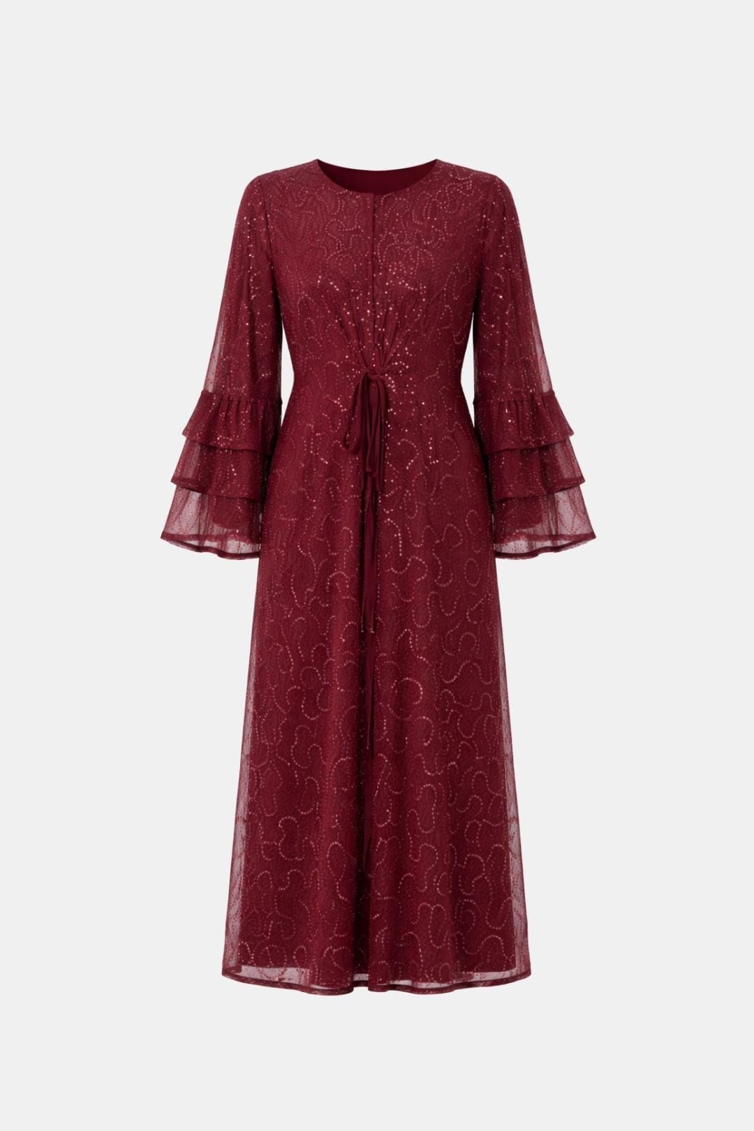 Lunessa – Sequin Lace Tie Waist Abaya in Raisin