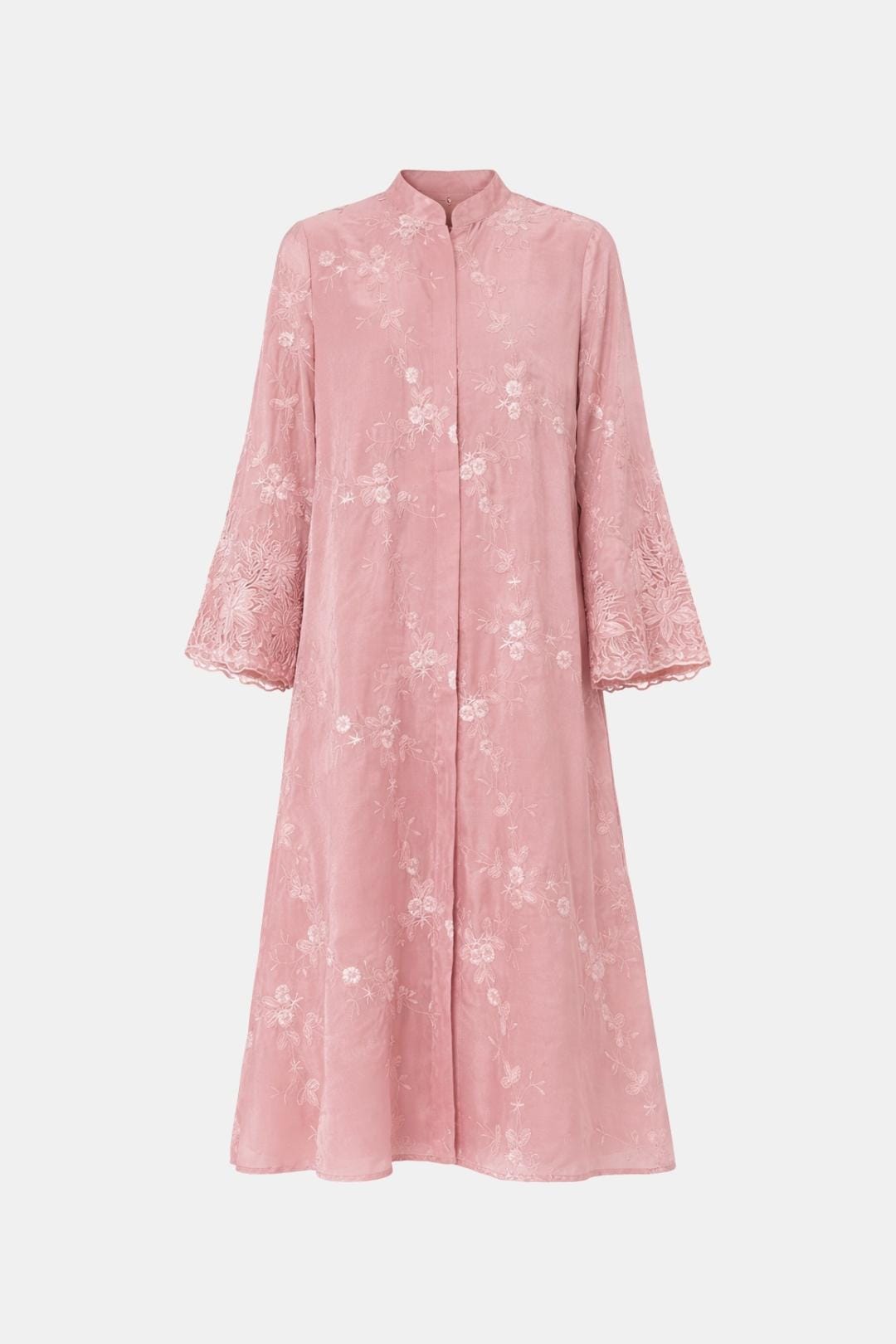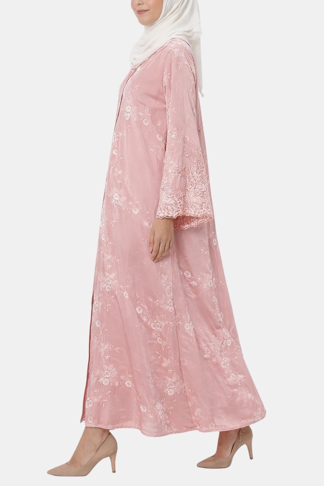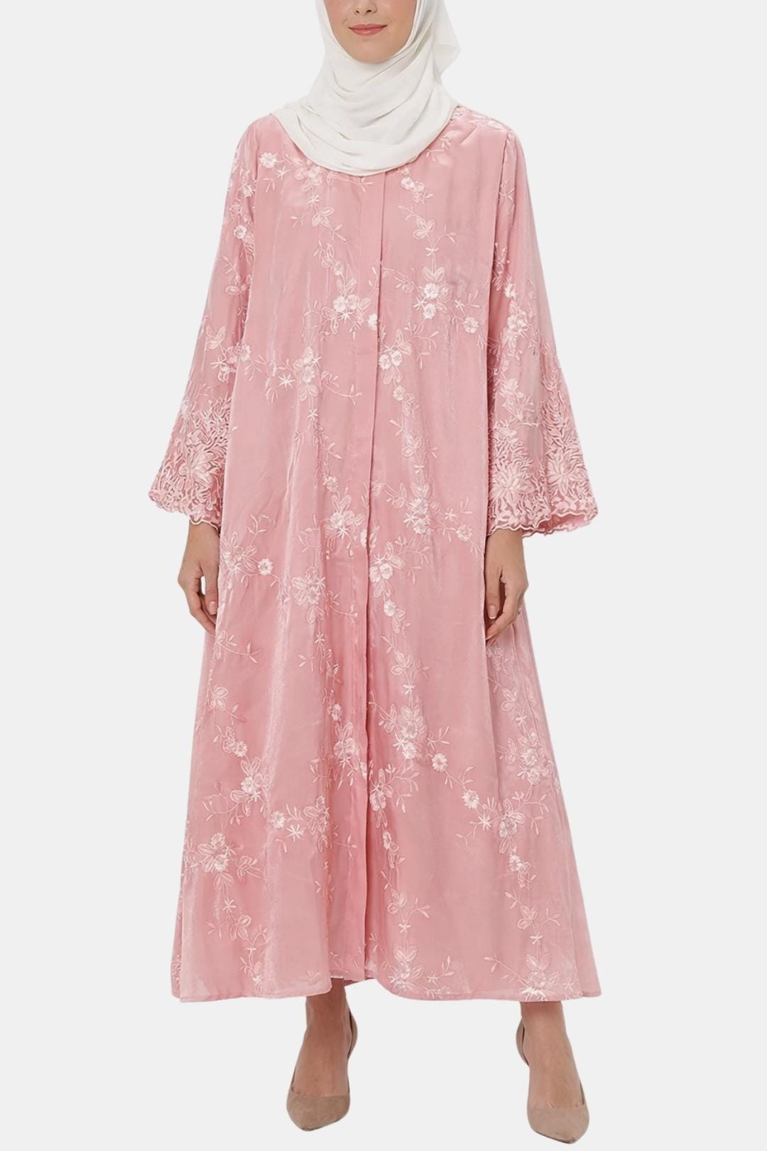 Safiyae – Embroidered Mandarin Collar Abaya in English Rose