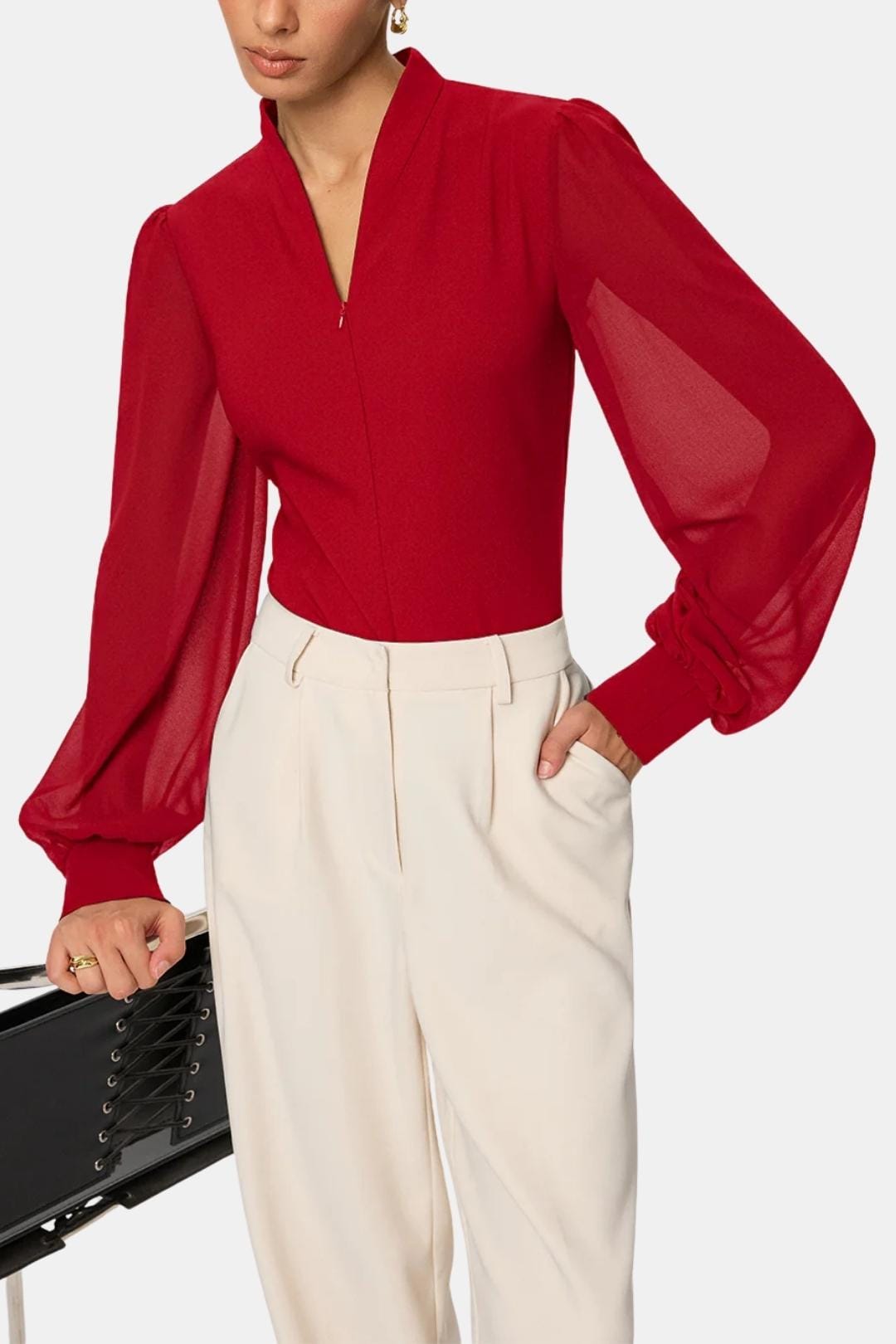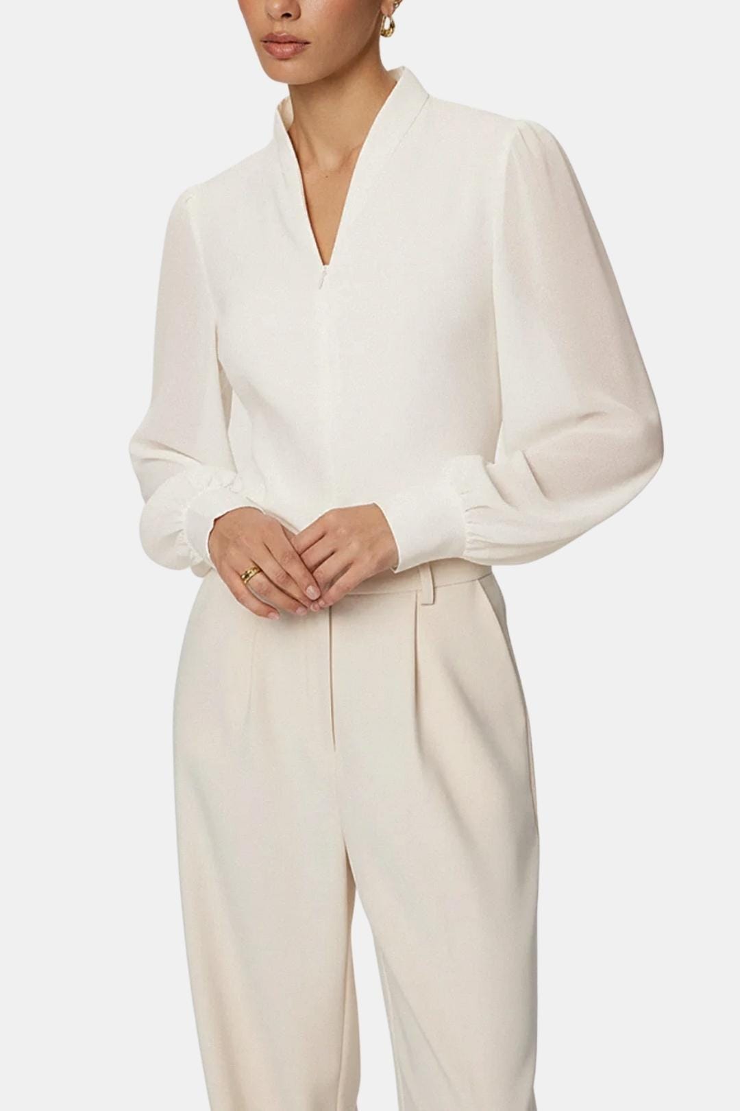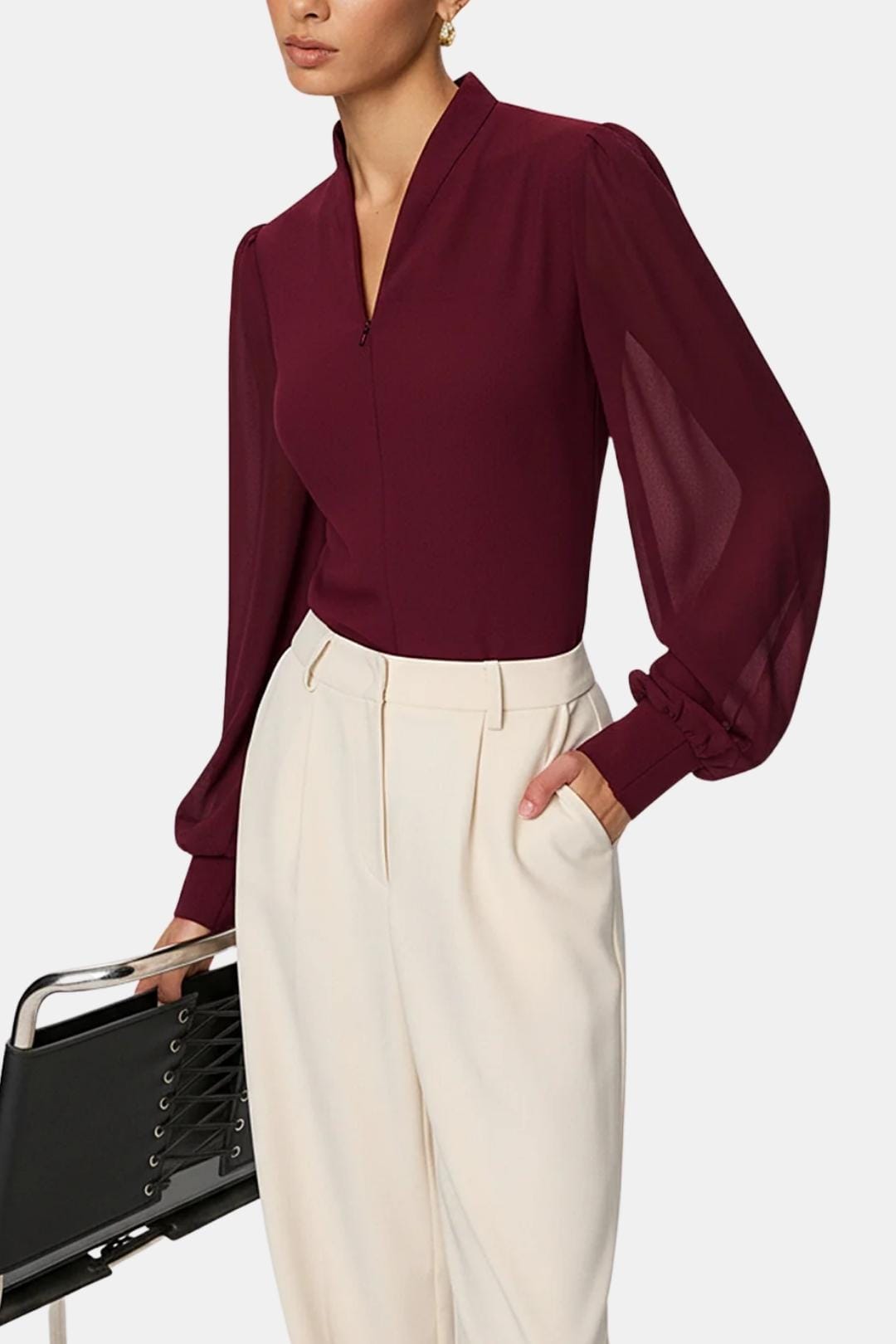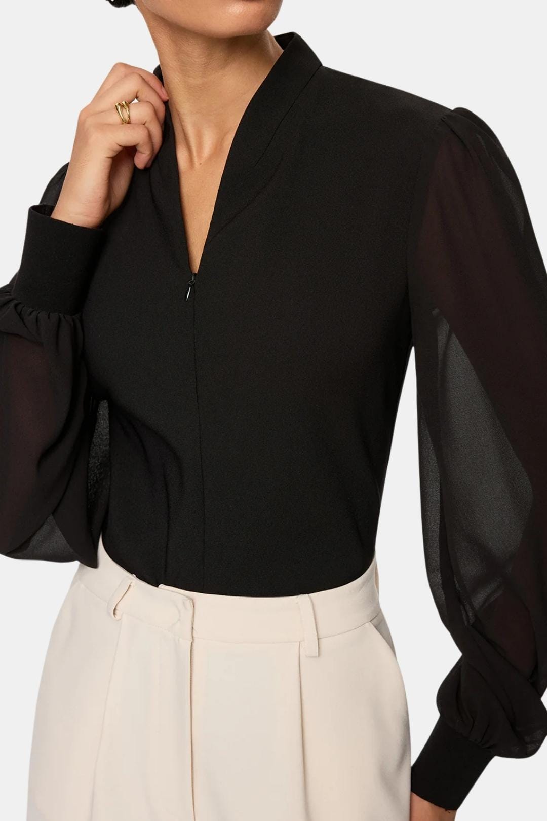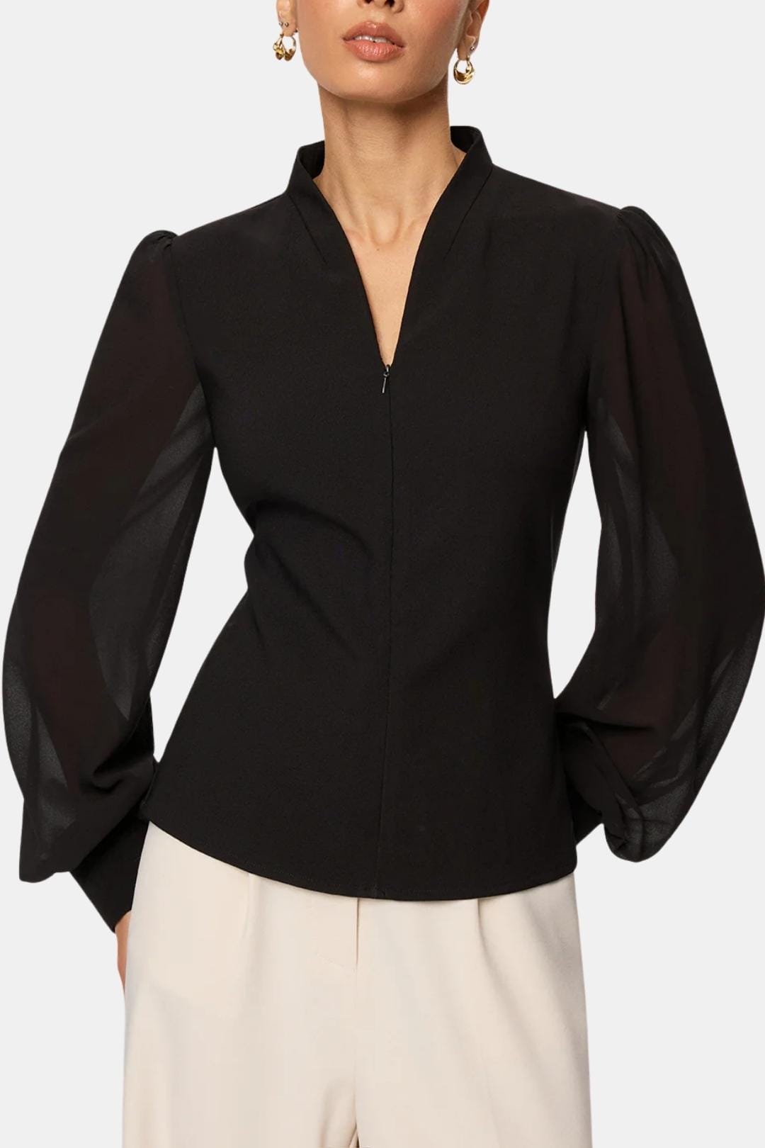Arelia – Zip Detail Chiffon Sleeve Blouse