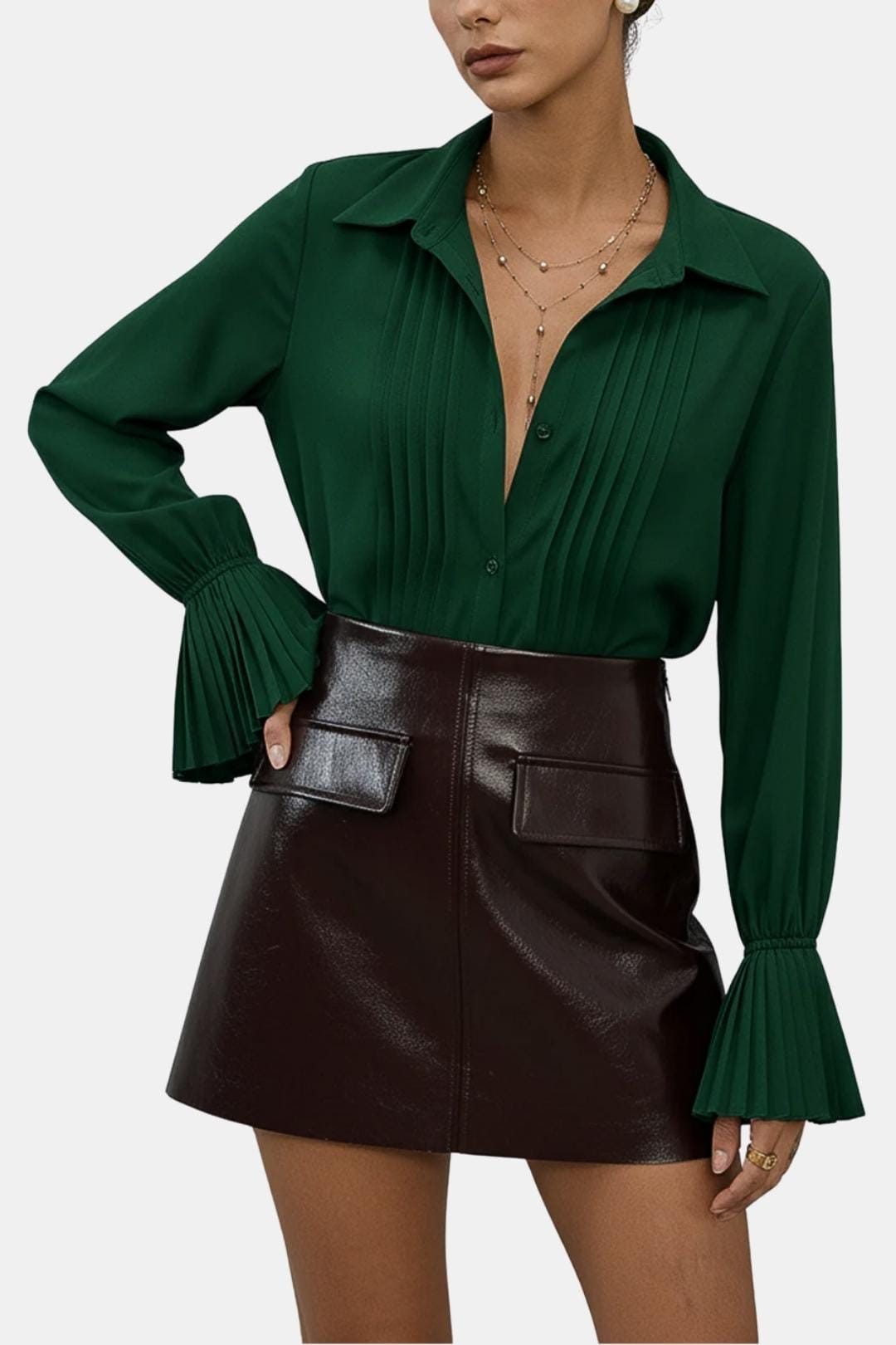 Nerisa – Bell Pleated Bell Long Sleeve Shirt