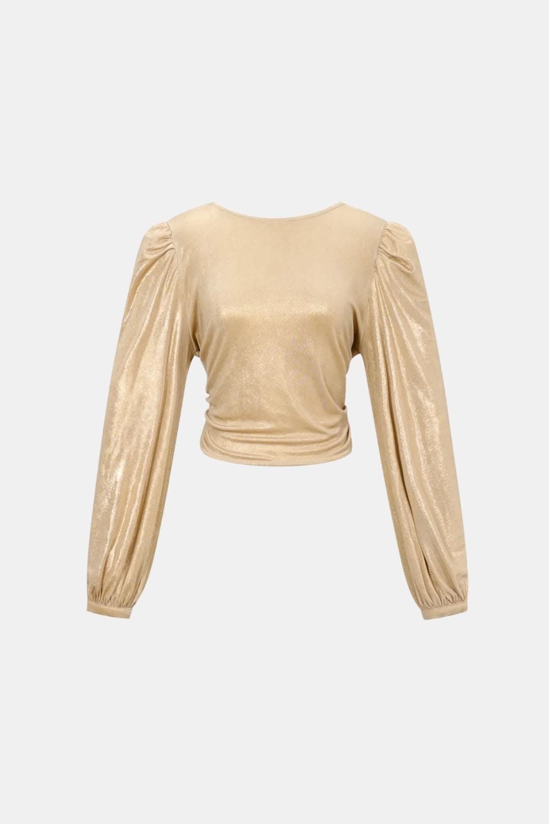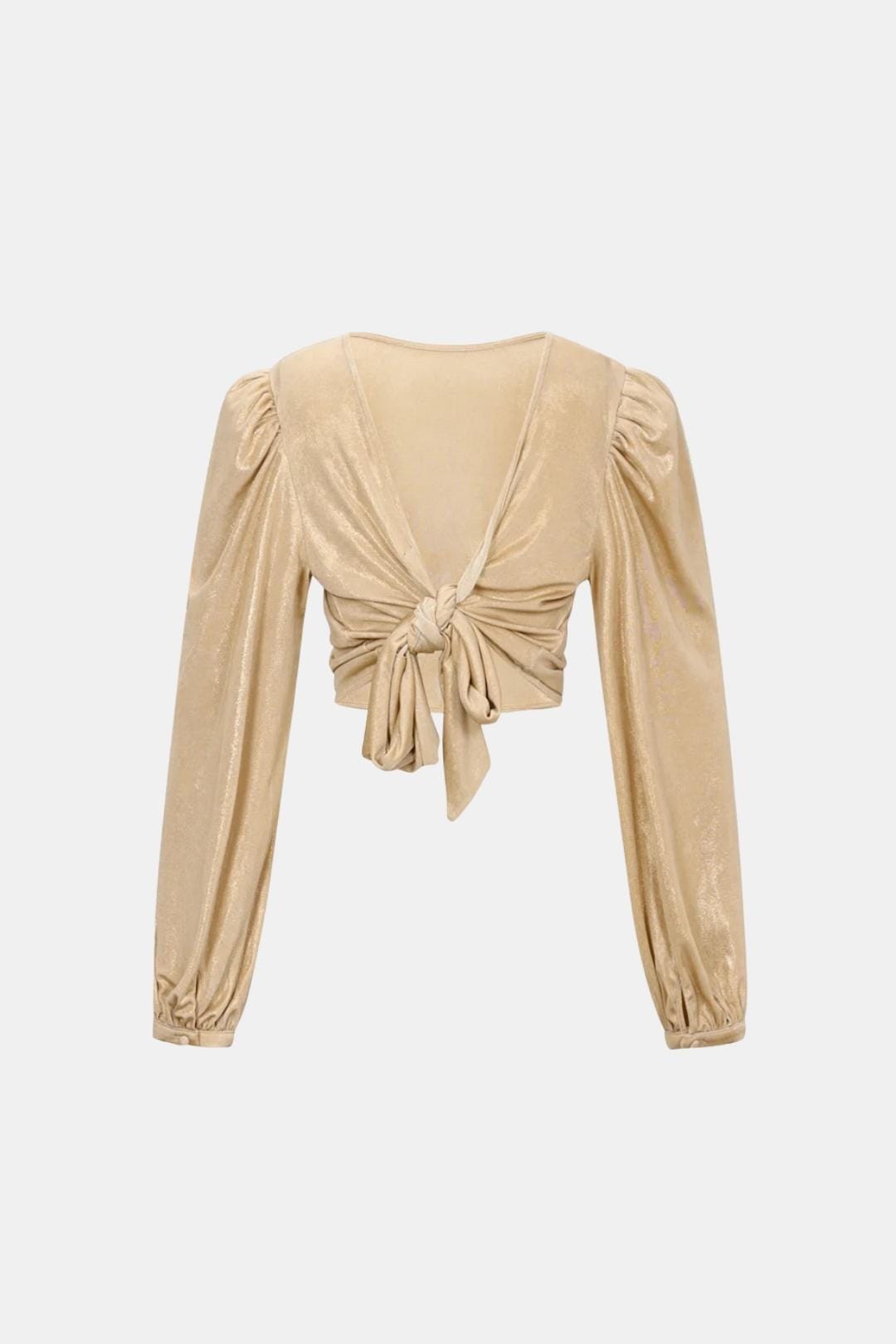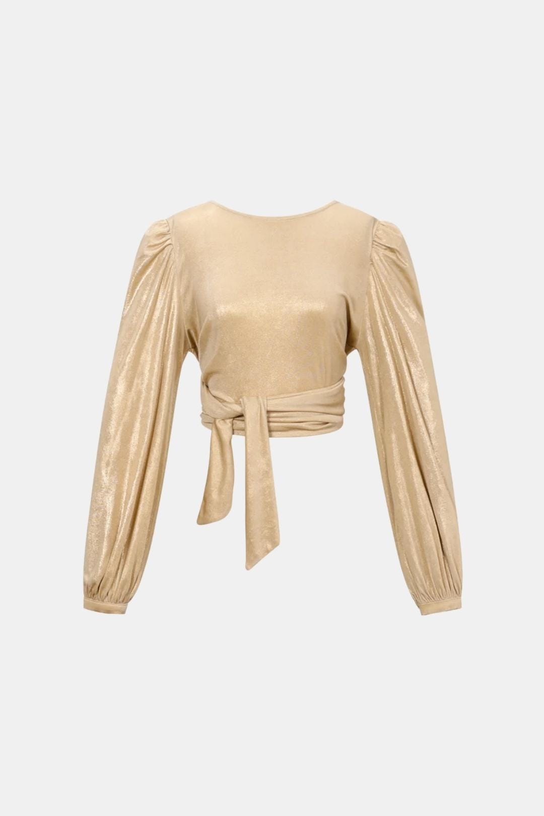 Raelyn – Draped Long-Sleeve Tie-Waist Evening Top