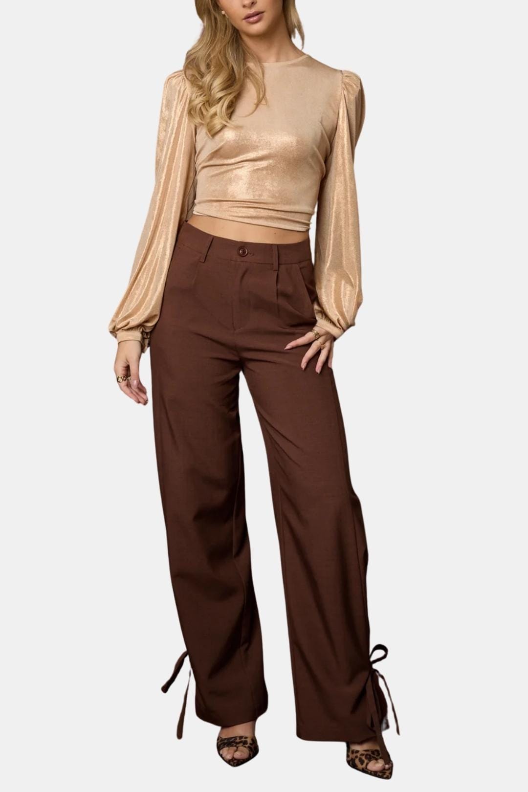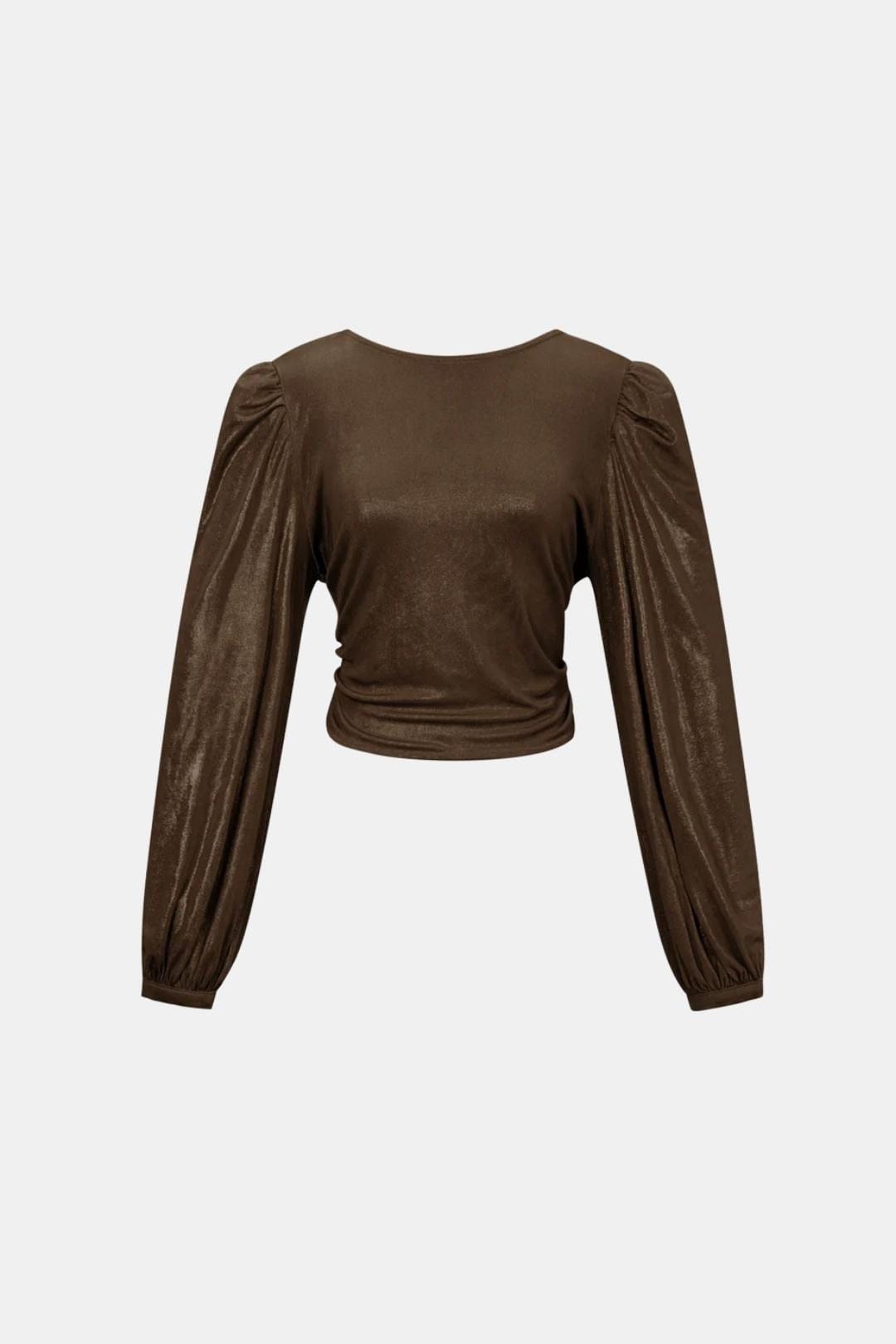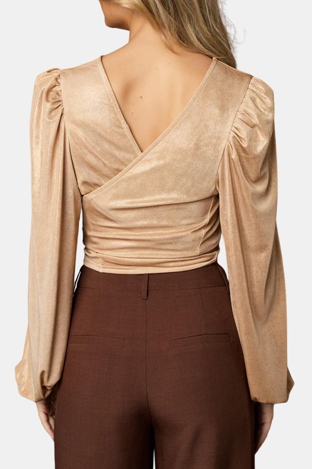 Raelyn – Draped Long-Sleeve Tie-Waist Evening Top
