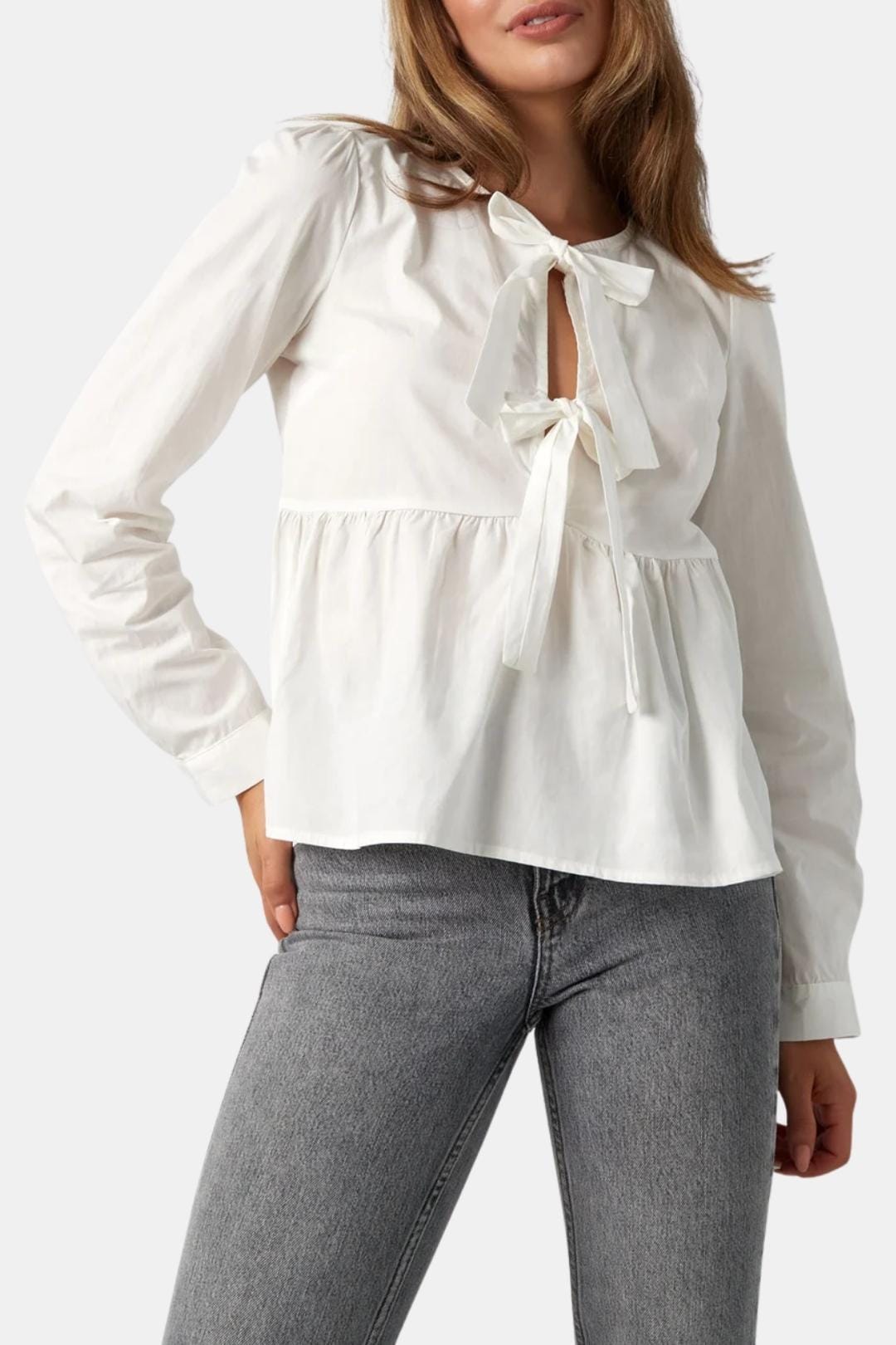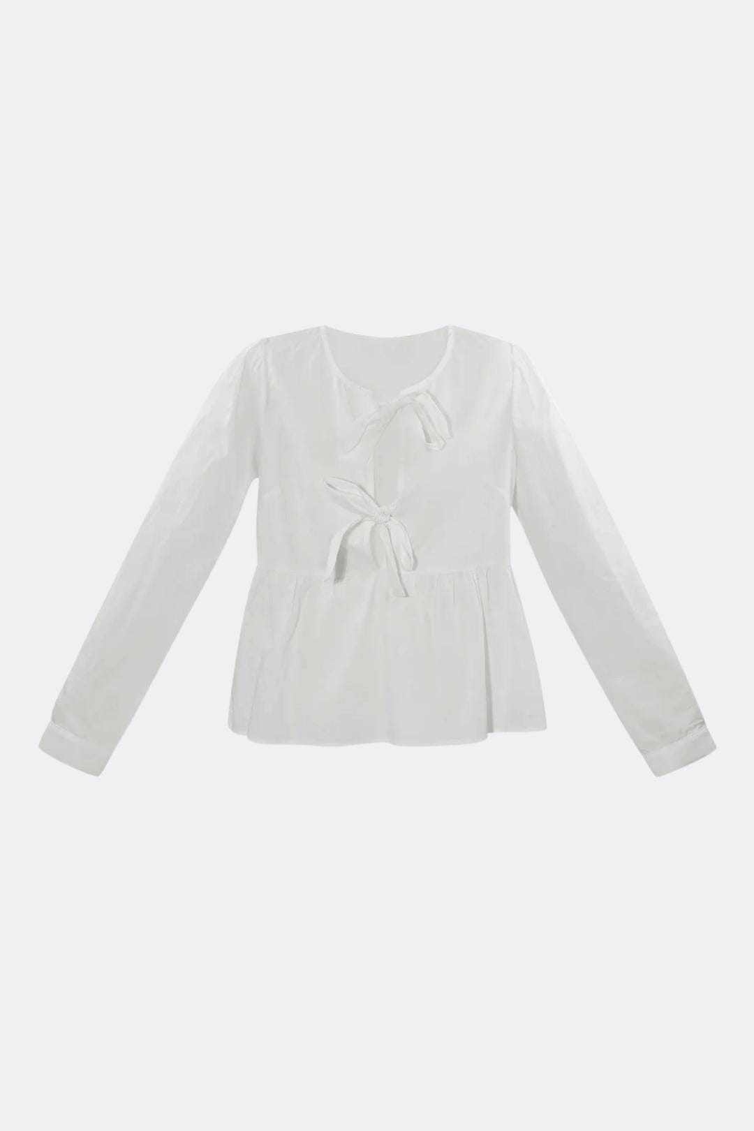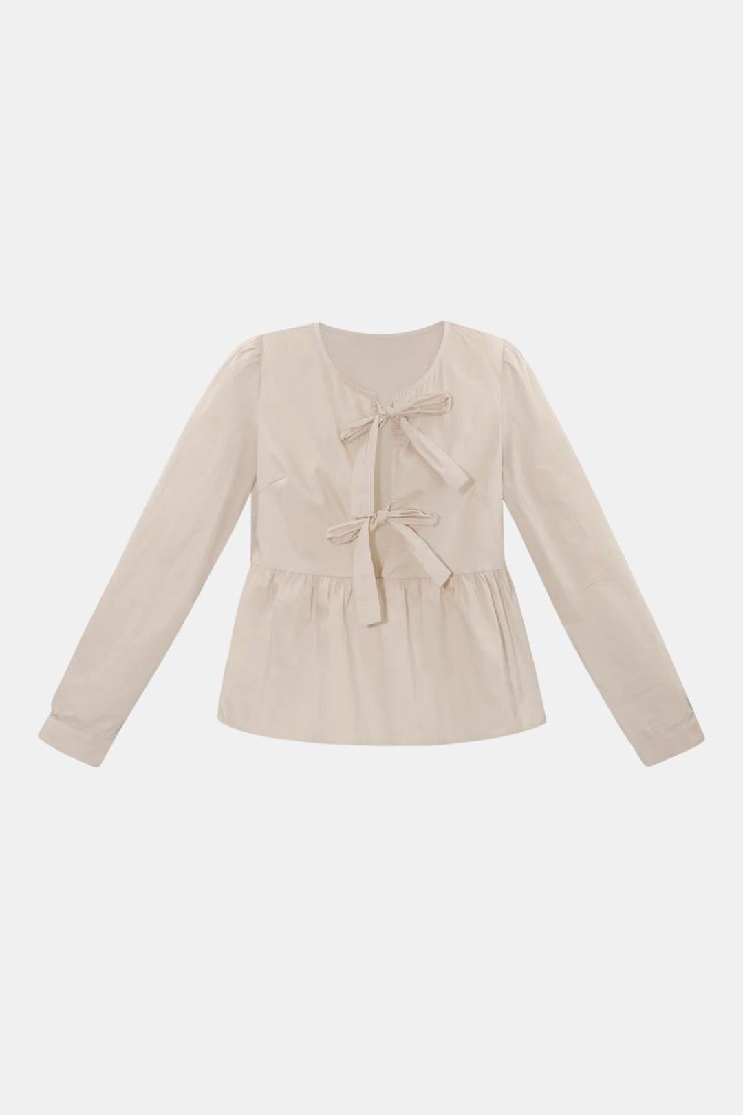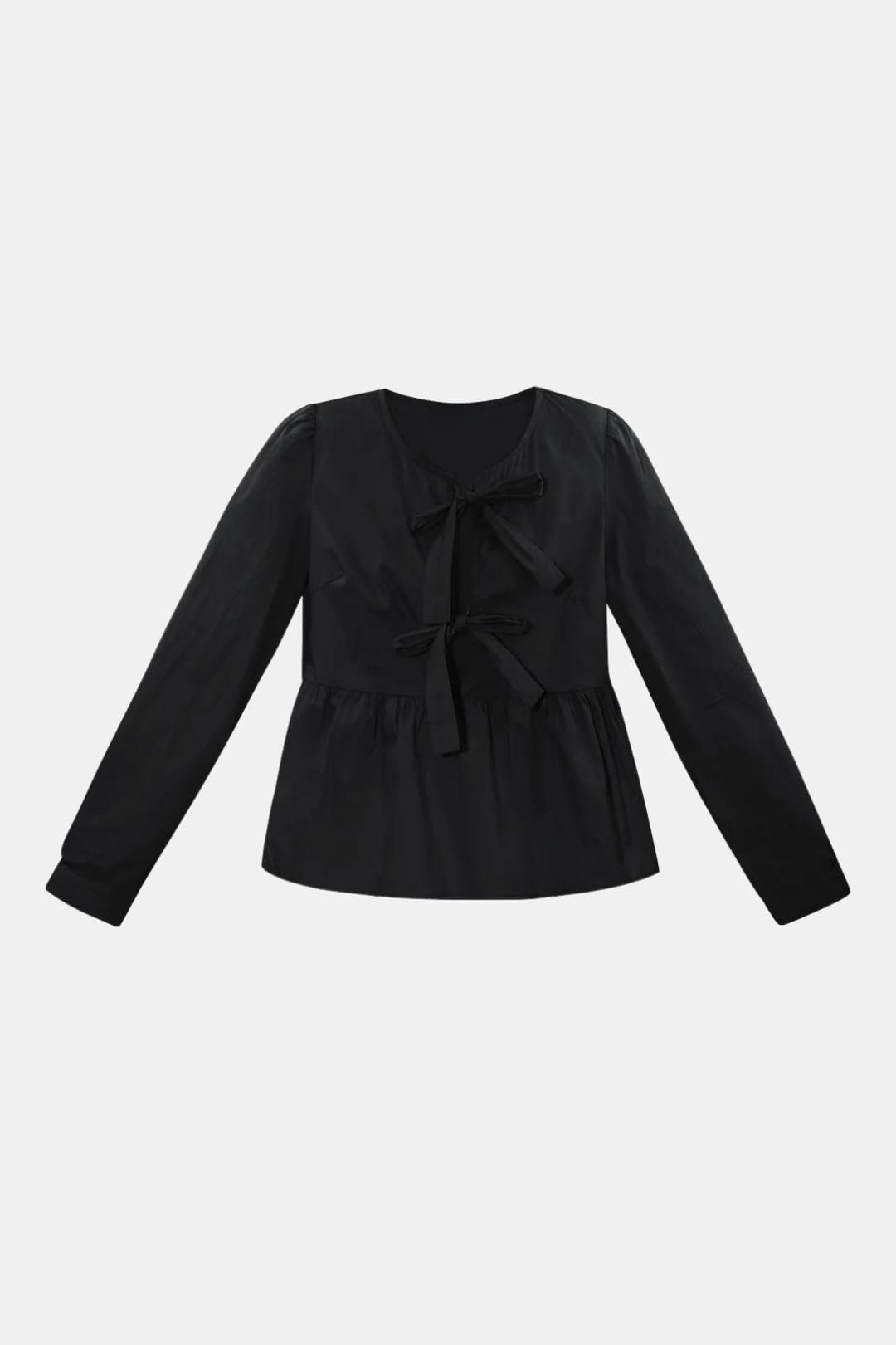 Salem – Long-Sleeve Peplum Blouse with Statement Bows