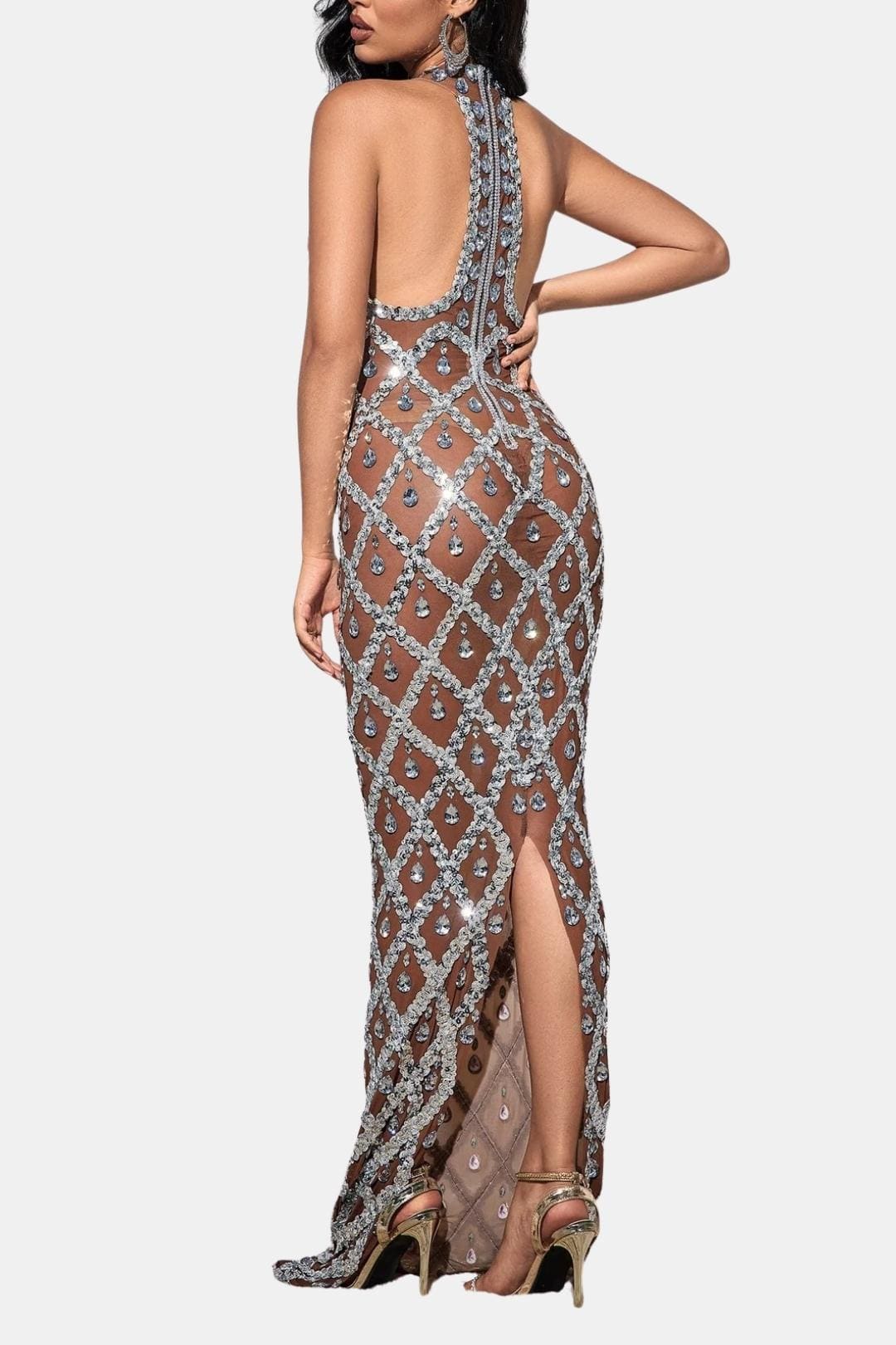 • Type: Embellished Mesh Maxi Dress