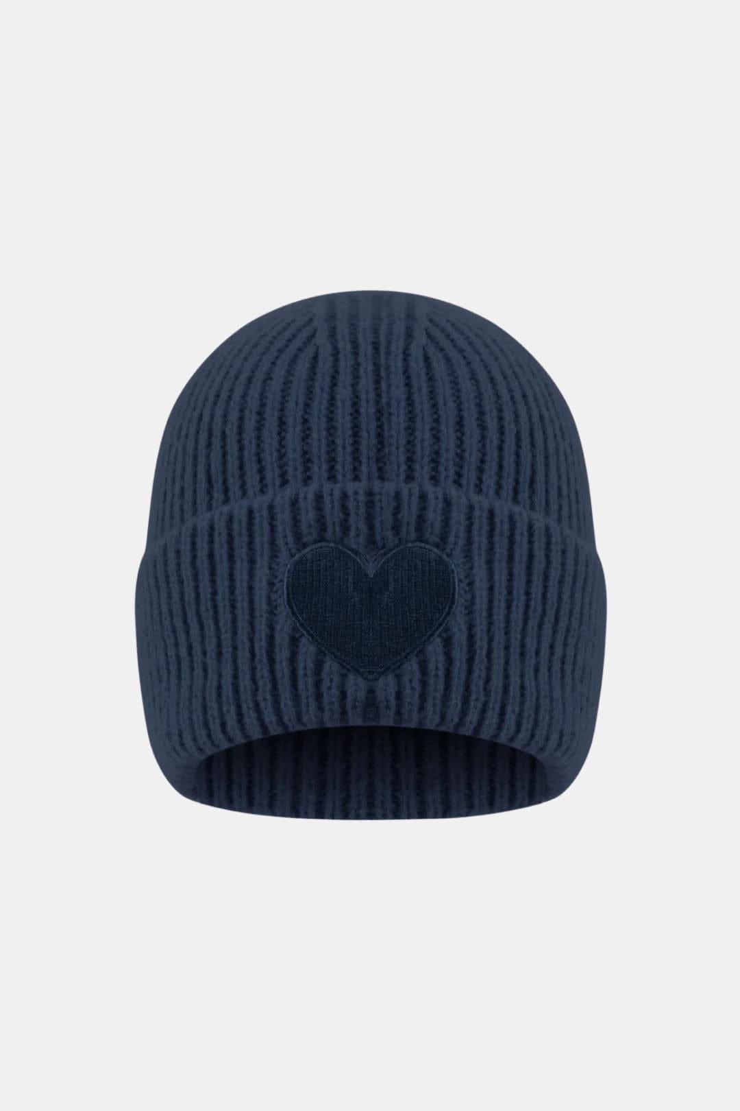 • Aesthetics: Features a minimalist heart patch on a ribbed knit design, creating a stylish yet understated winter accessory.