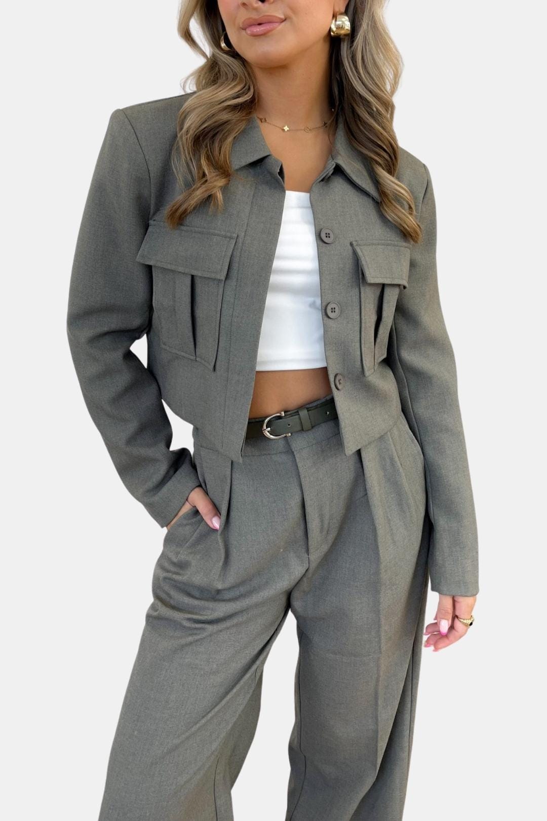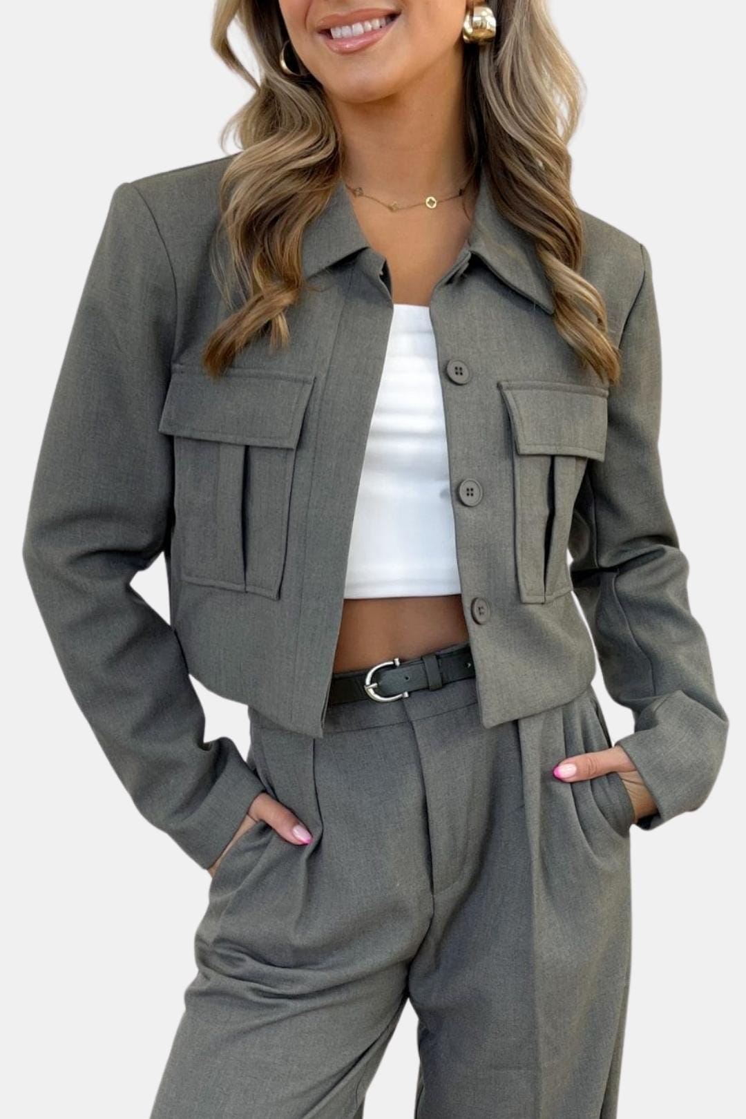 Alaynnah – Structured Cropped Utility Jacket in Grey