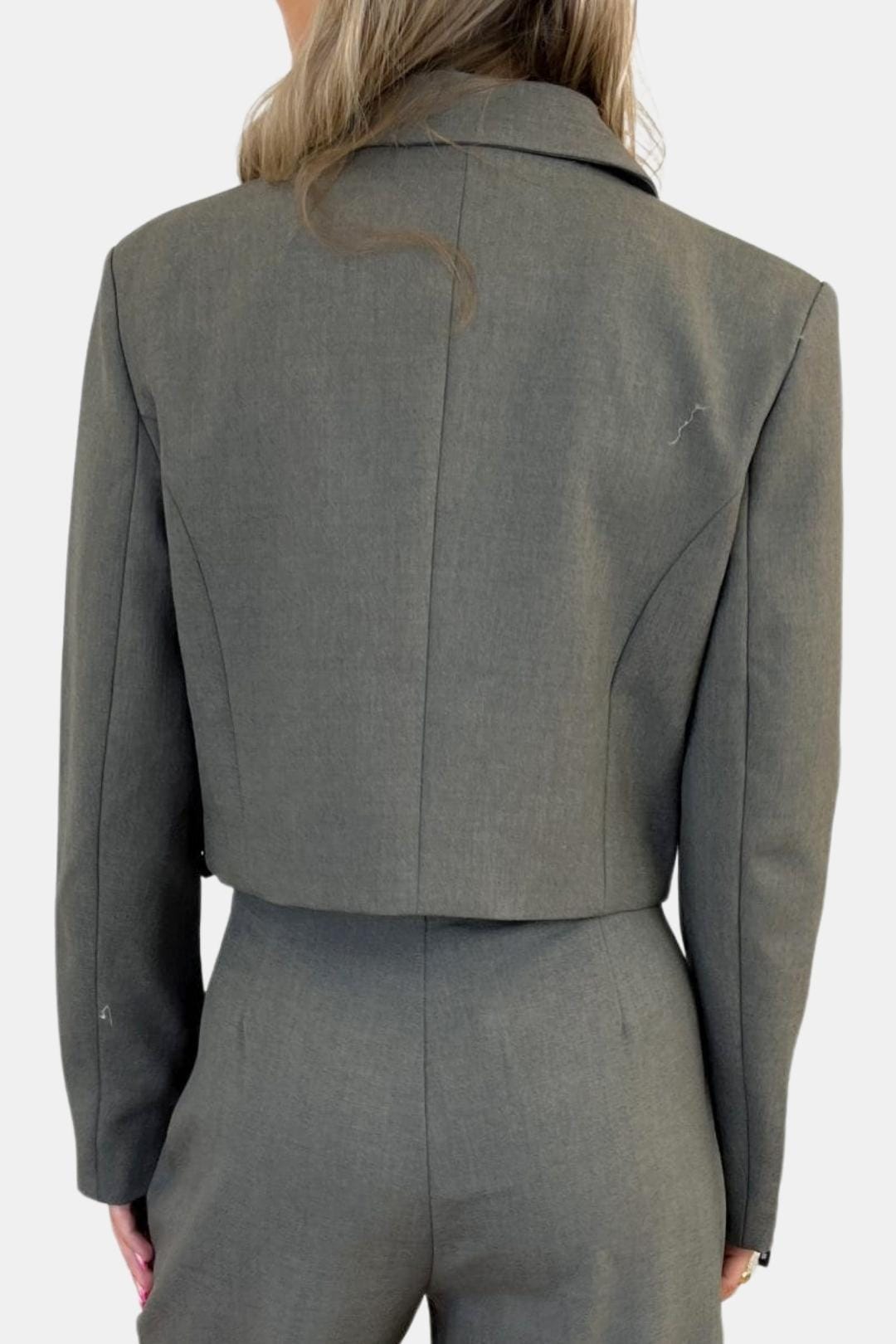 • Flattering Fit: Cropped cut highlights the waist while maintaining a structured, balanced shape.