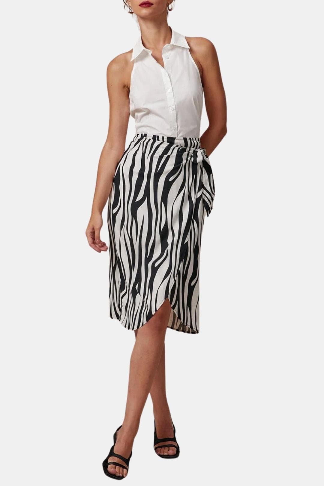 Evadne – Collared Button-Up Sleeveless Shirt in White