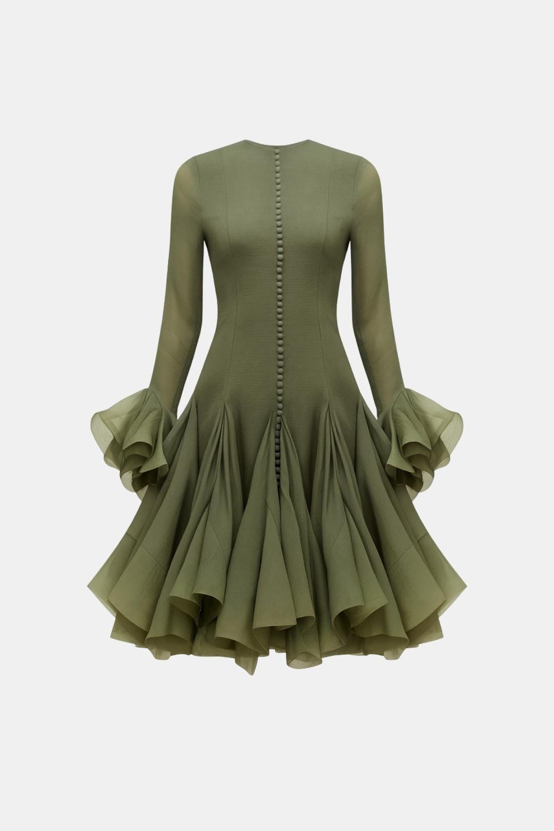 • Dramatic Sleeve Design: Layered flared cuffs deliver eye-catching texture and graceful motion.