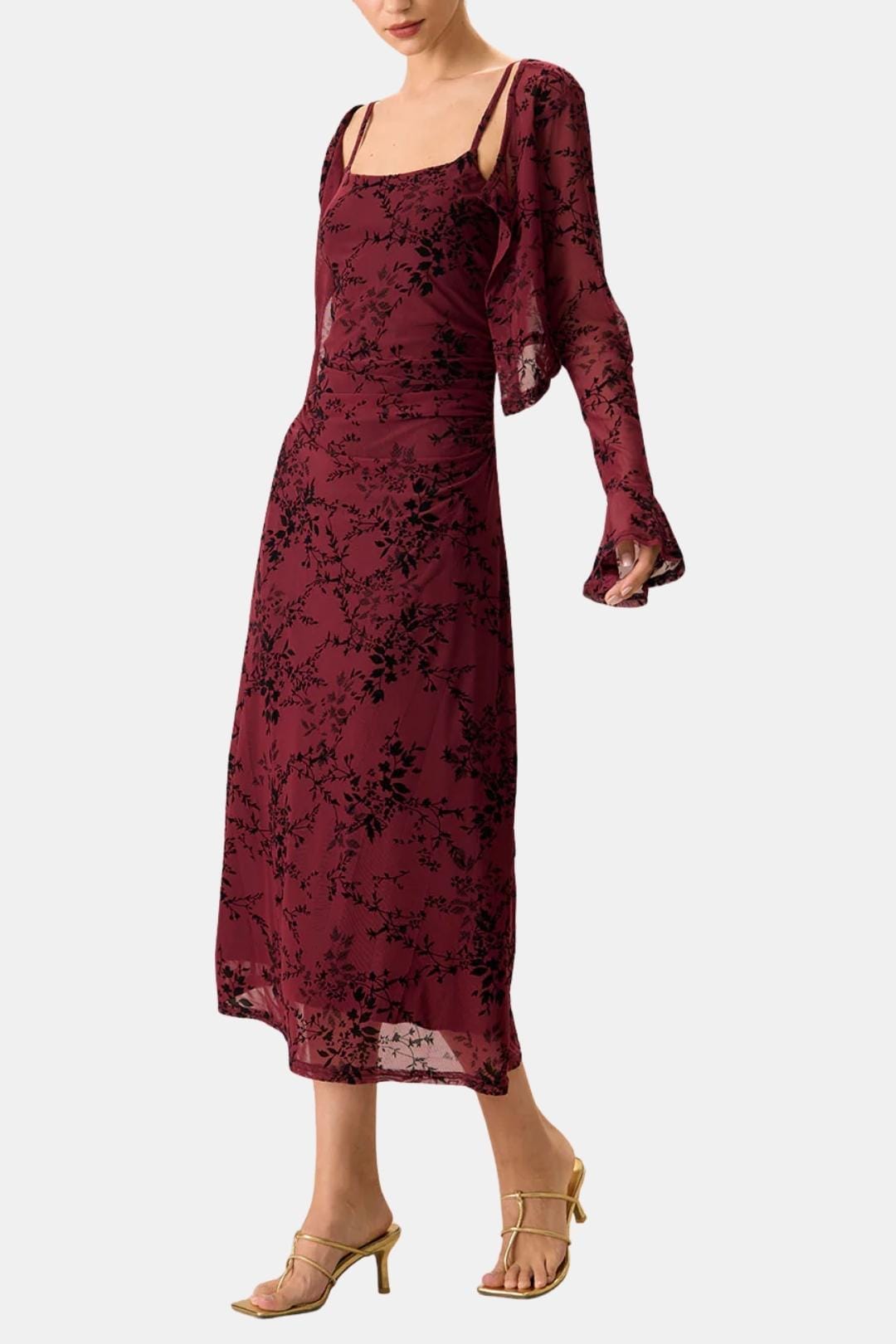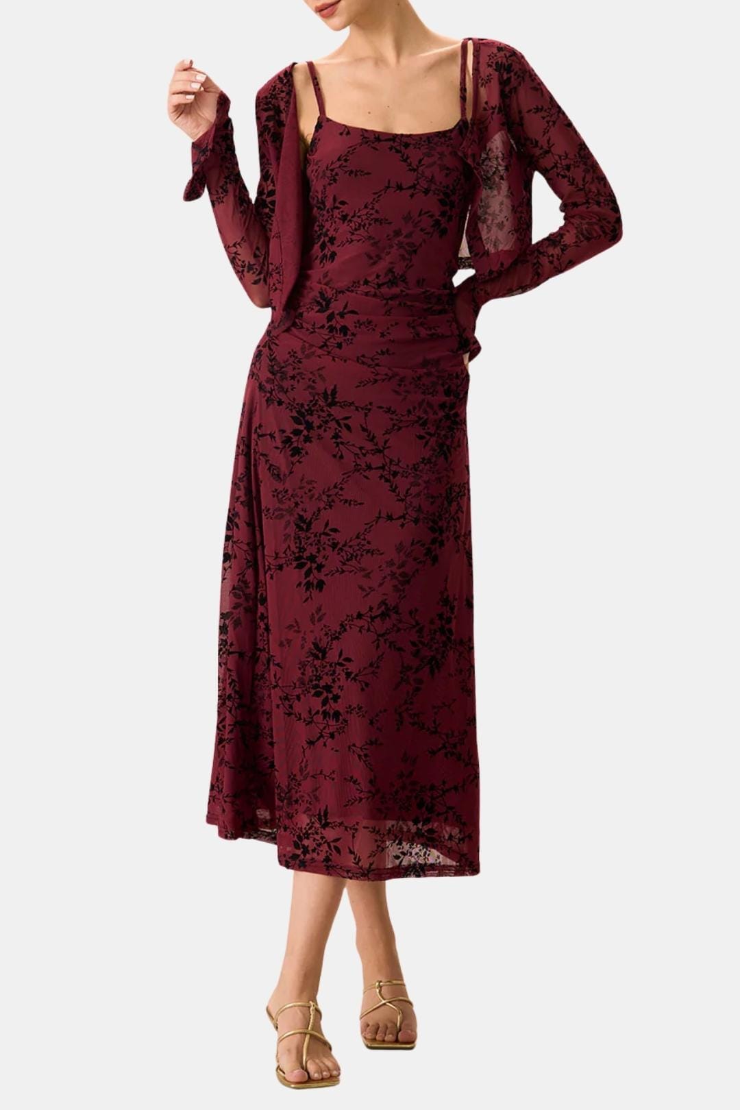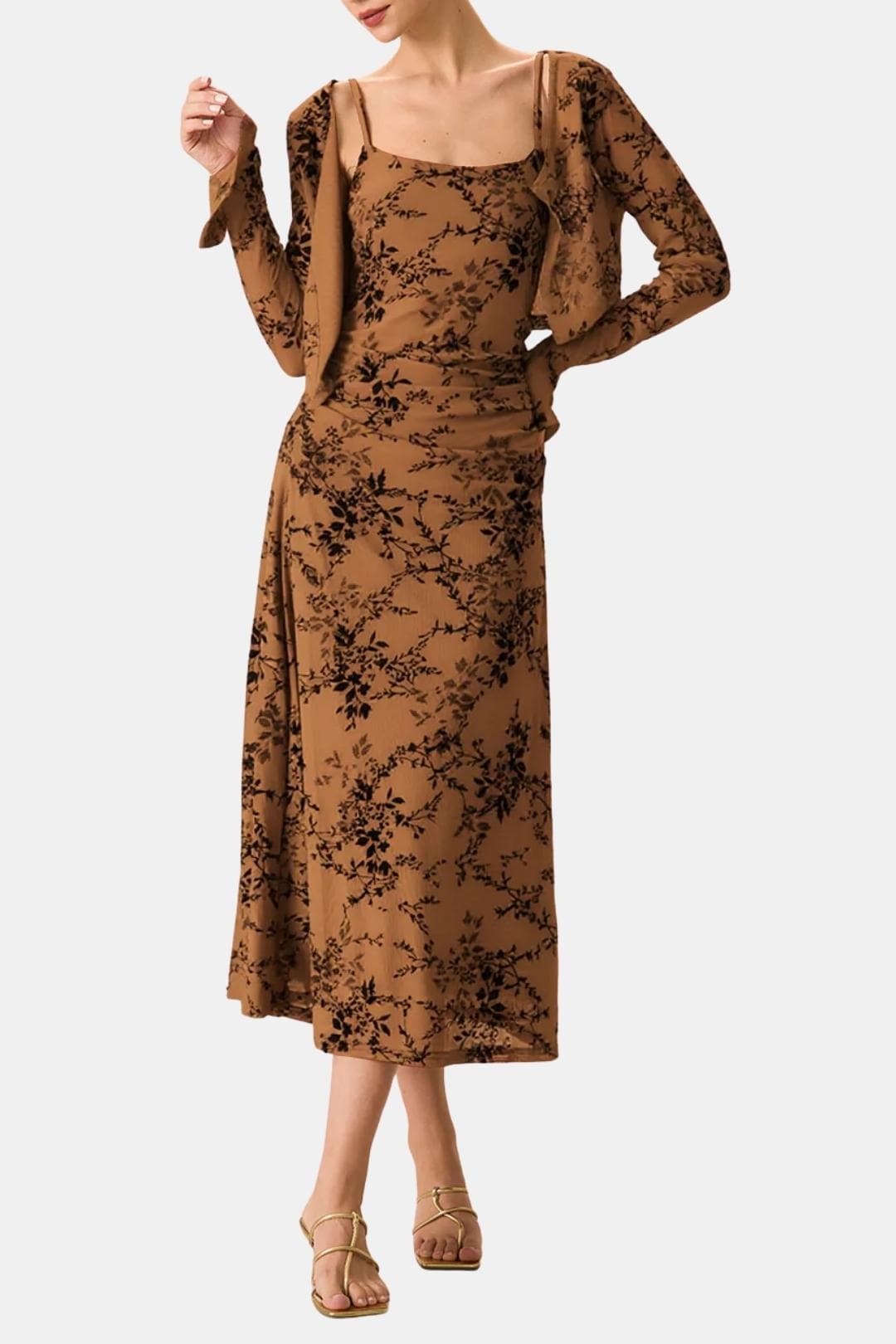 Meet Micah — a refined floral slip midi dress designed to contour the silhouette with a sleek bodycon fit and elegant detailing. Feminine and modern, Micah blends soft floral accents with a polished, evening-ready profile.