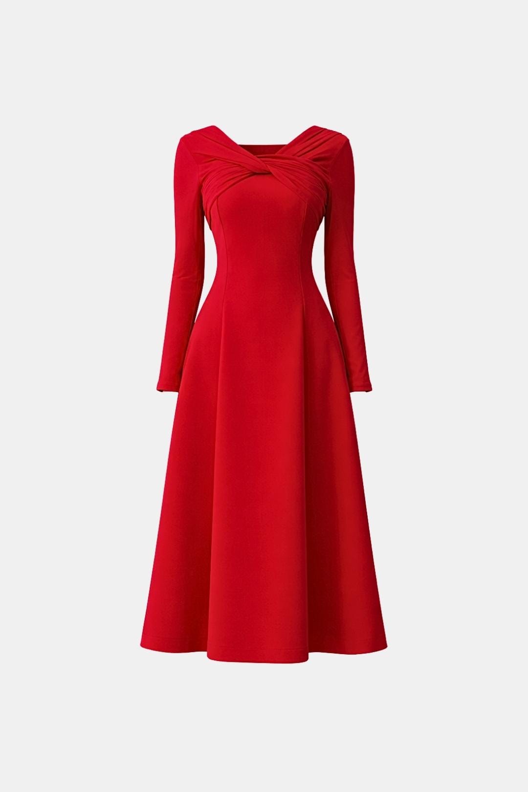 Melynda – Twist Front V-Neck Midi Dress in Red