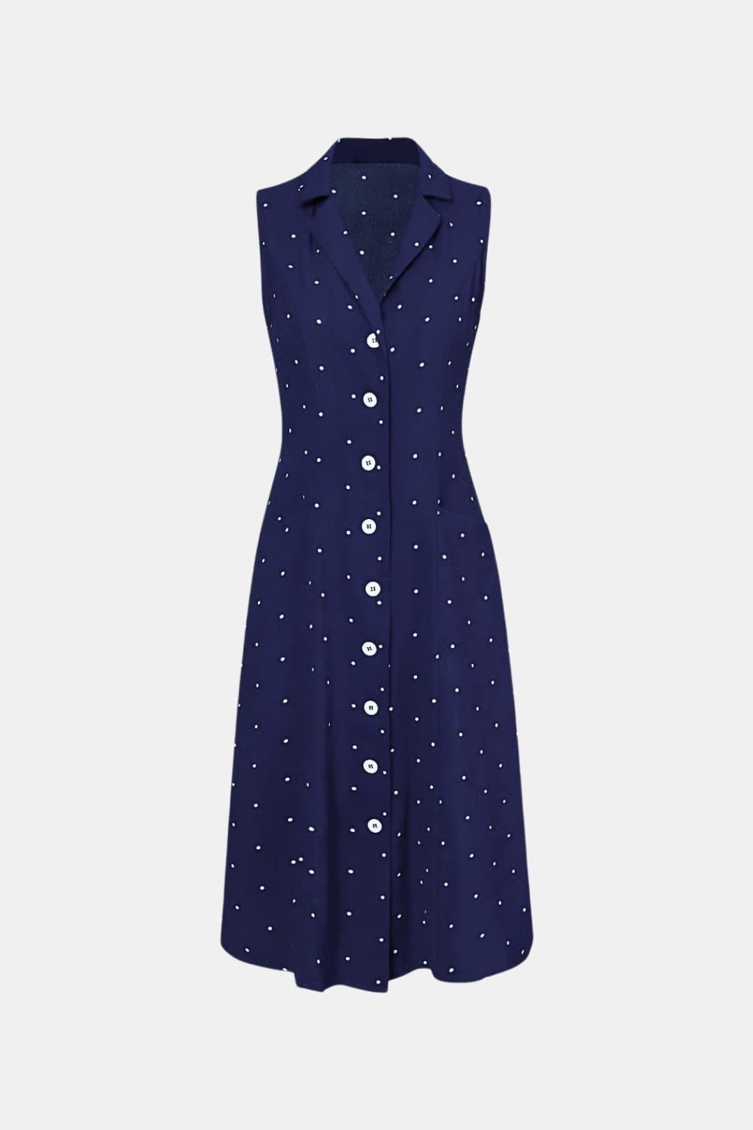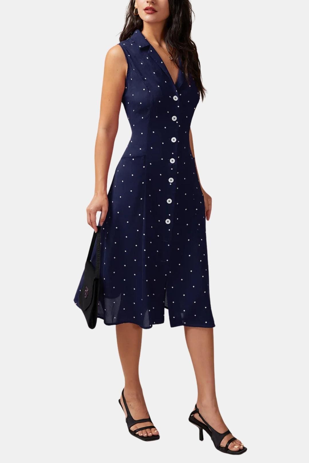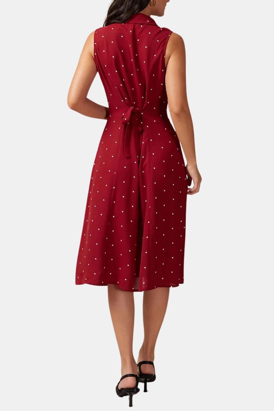 Meet Ocean — a timeless polka dot midi dress designed to flatter with a feminine V-neckline and adjustable tie-back detail. Clean lines and a classic print create an effortless silhouette that transitions seamlessly from day to evening.
