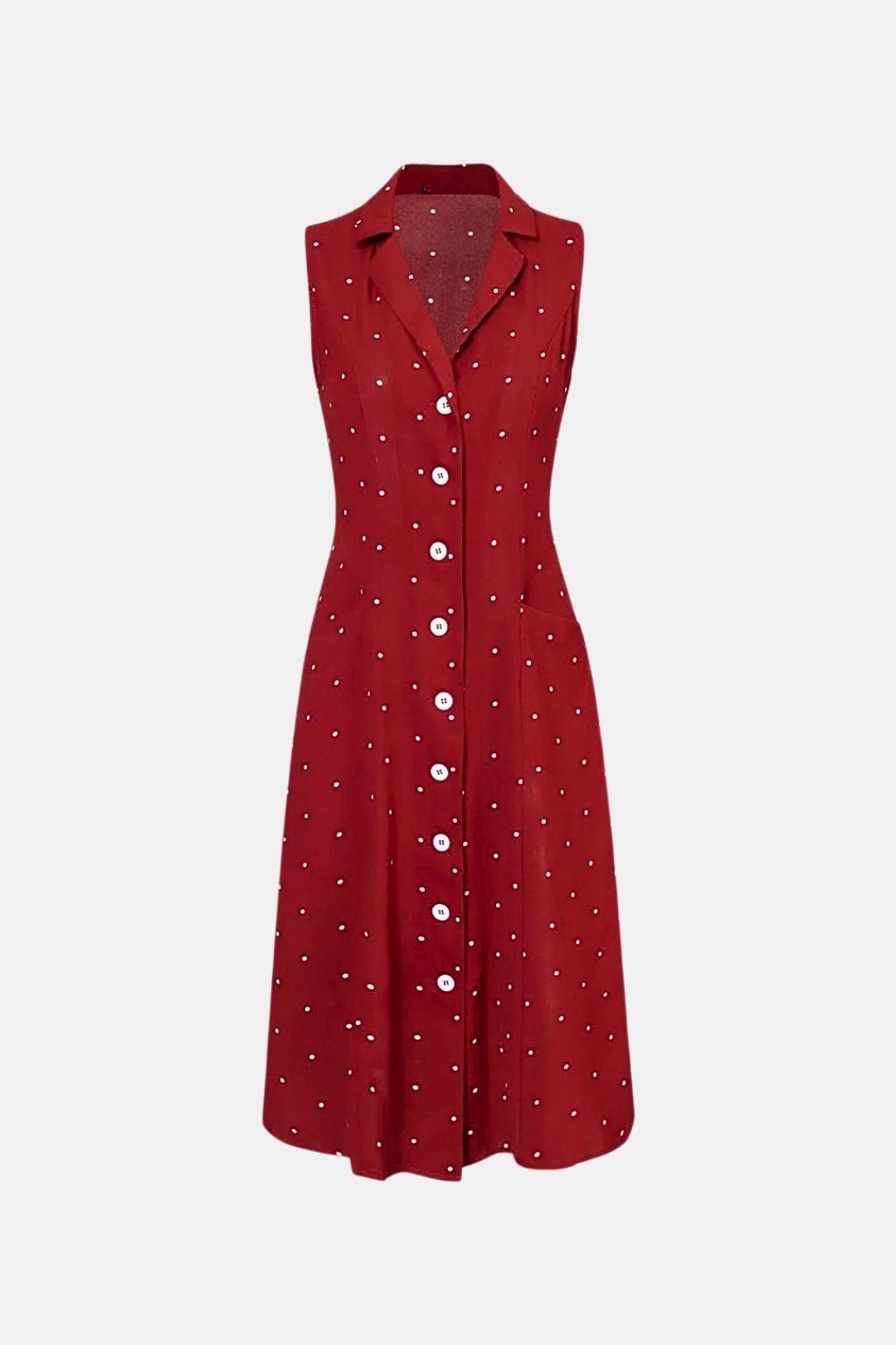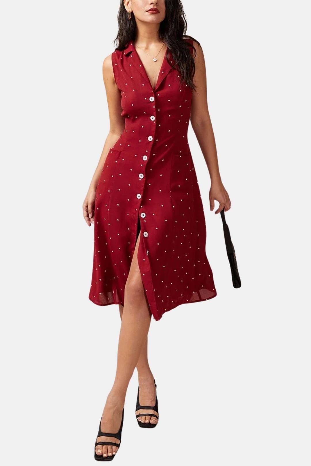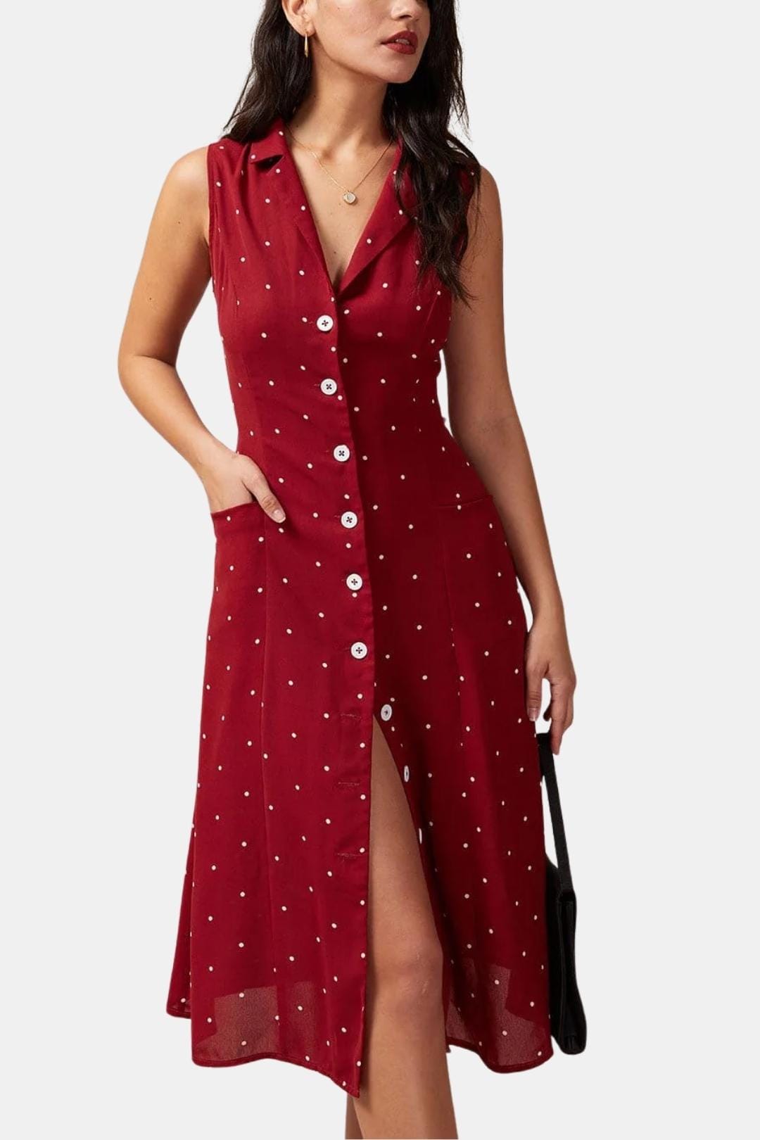 Meet Ocean — a timeless polka dot midi dress designed to flatter with a feminine V-neckline and adjustable tie-back detail. Clean lines and a classic print create an effortless silhouette that transitions seamlessly from day to evening.