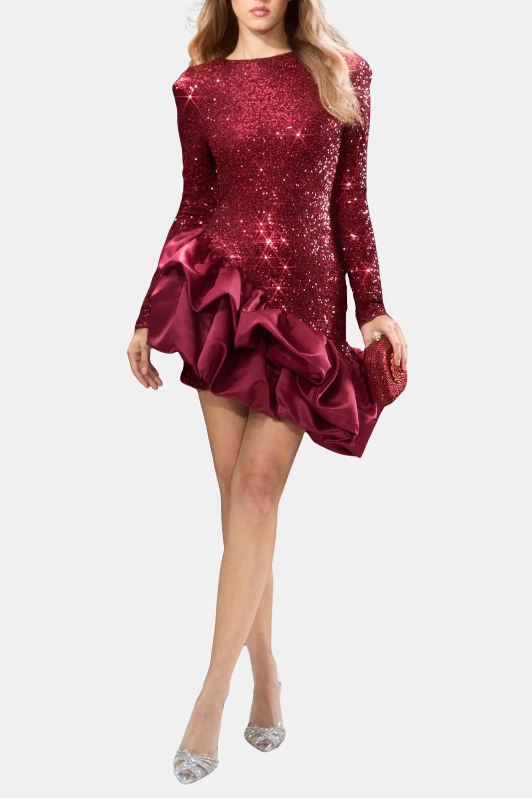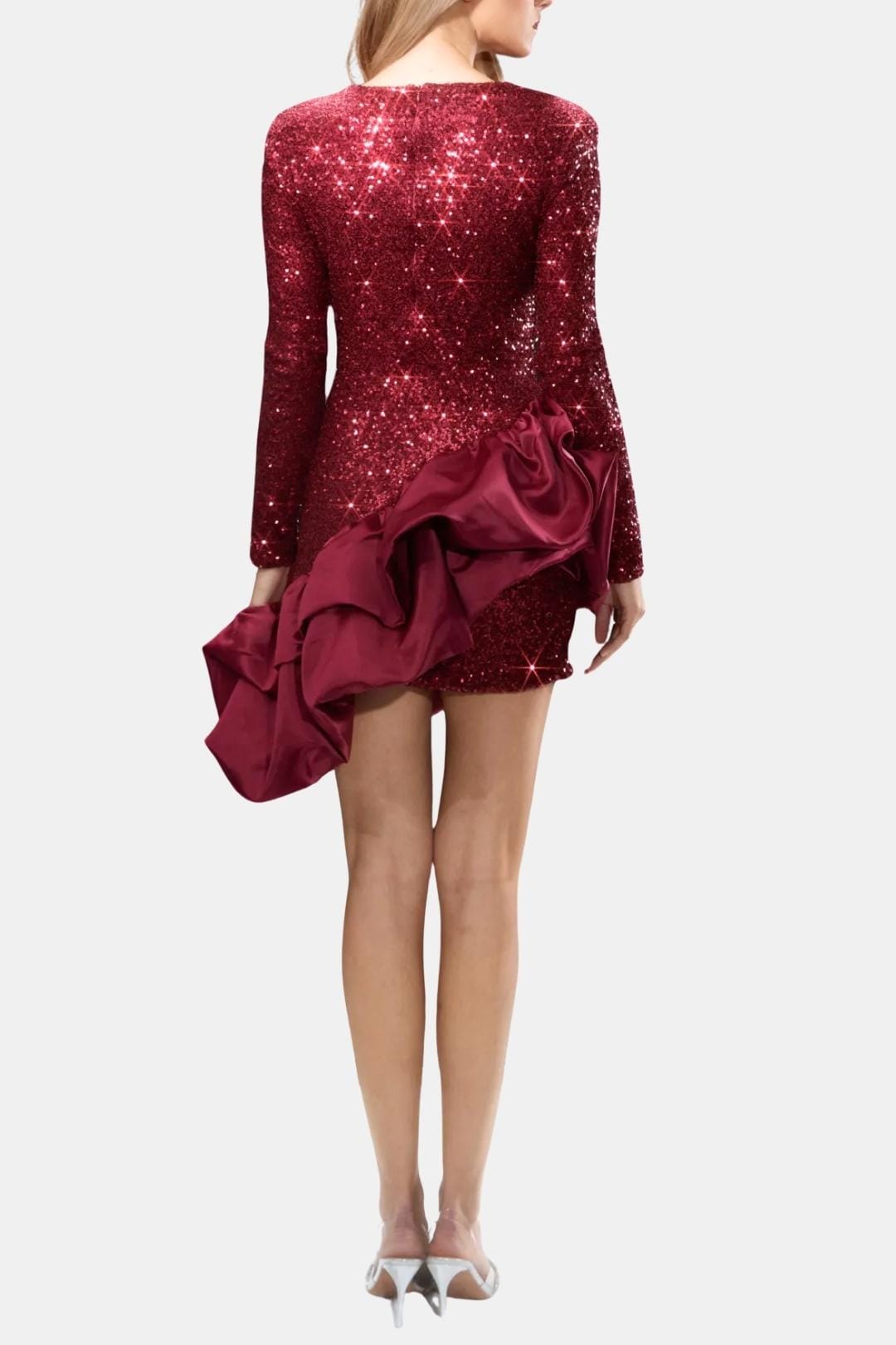 Amber – Asymmetric Ruffle Sequin Mini Dress in Red