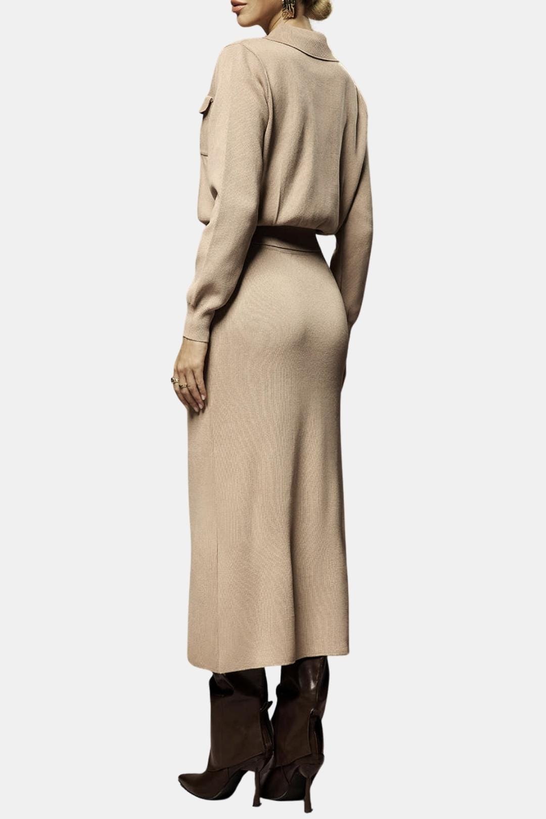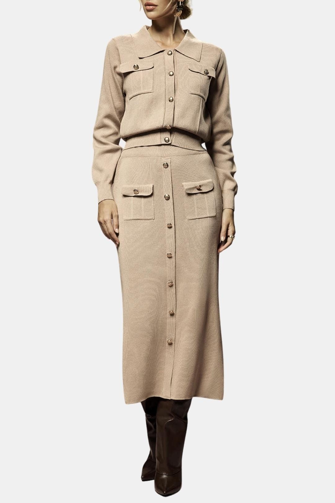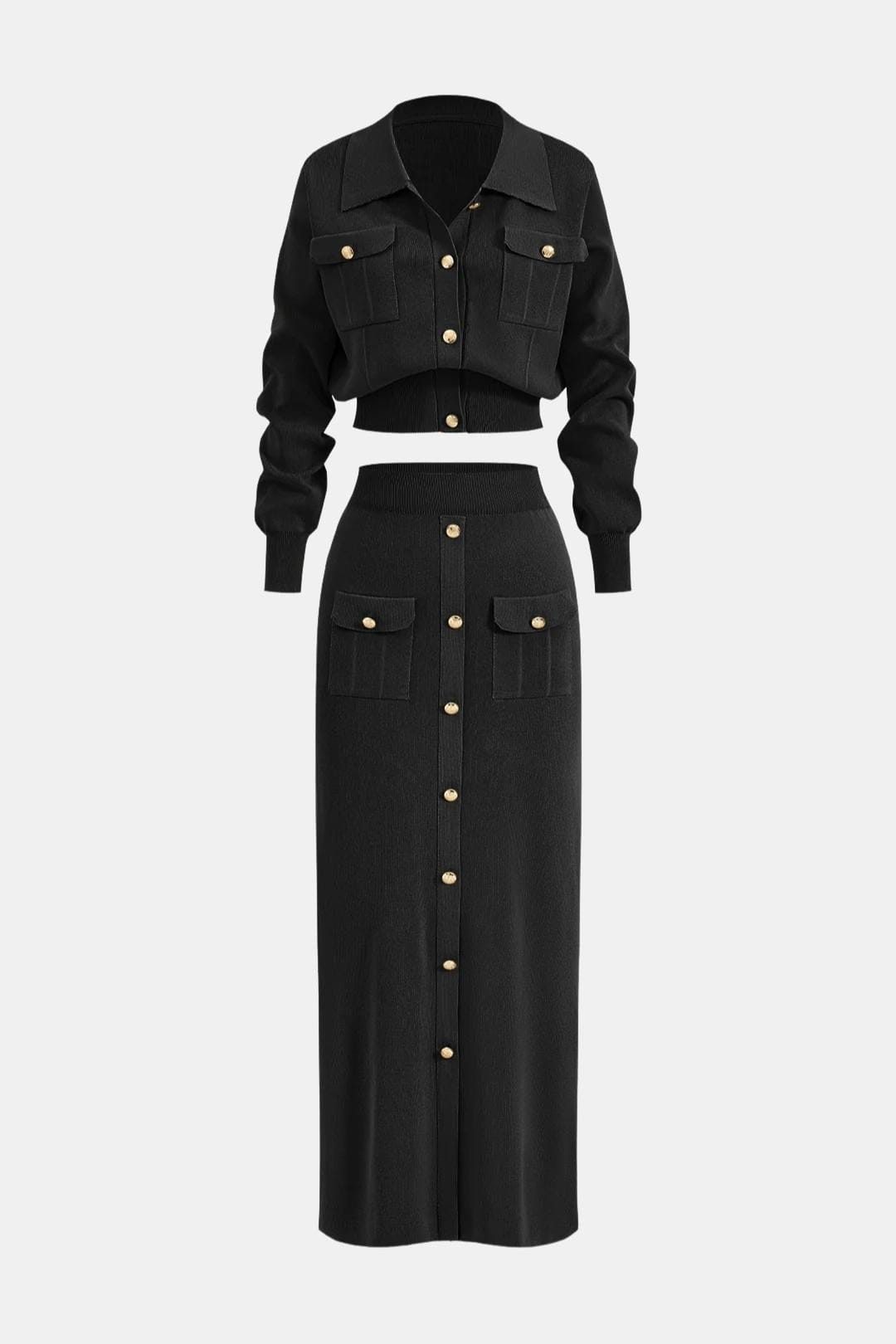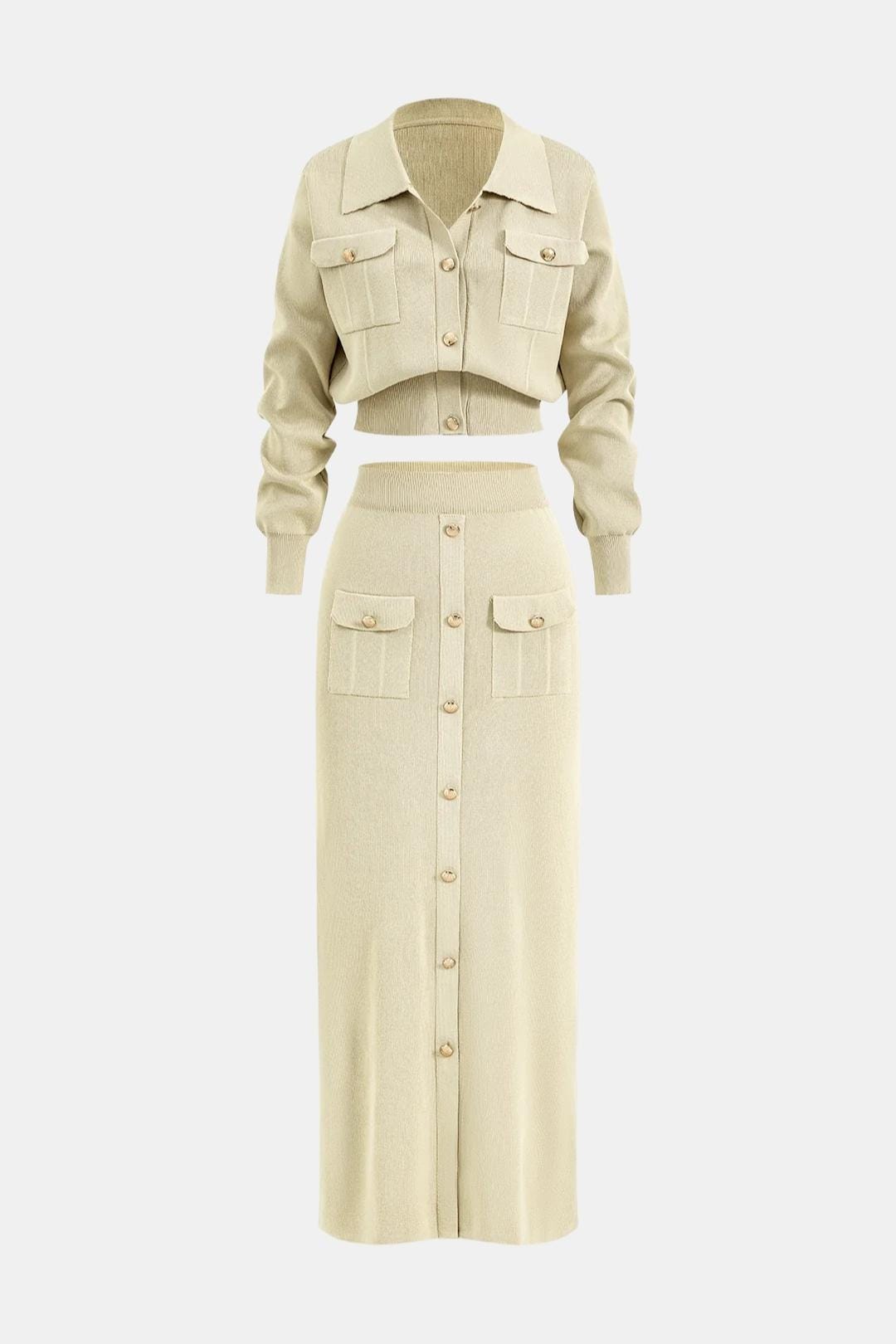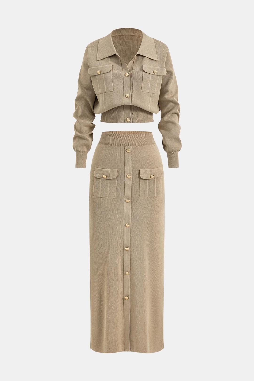 Briella – Cropped Knit Button-Up Top & Maxi Skirt Set