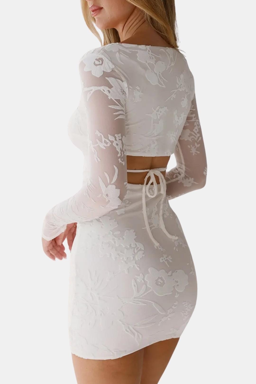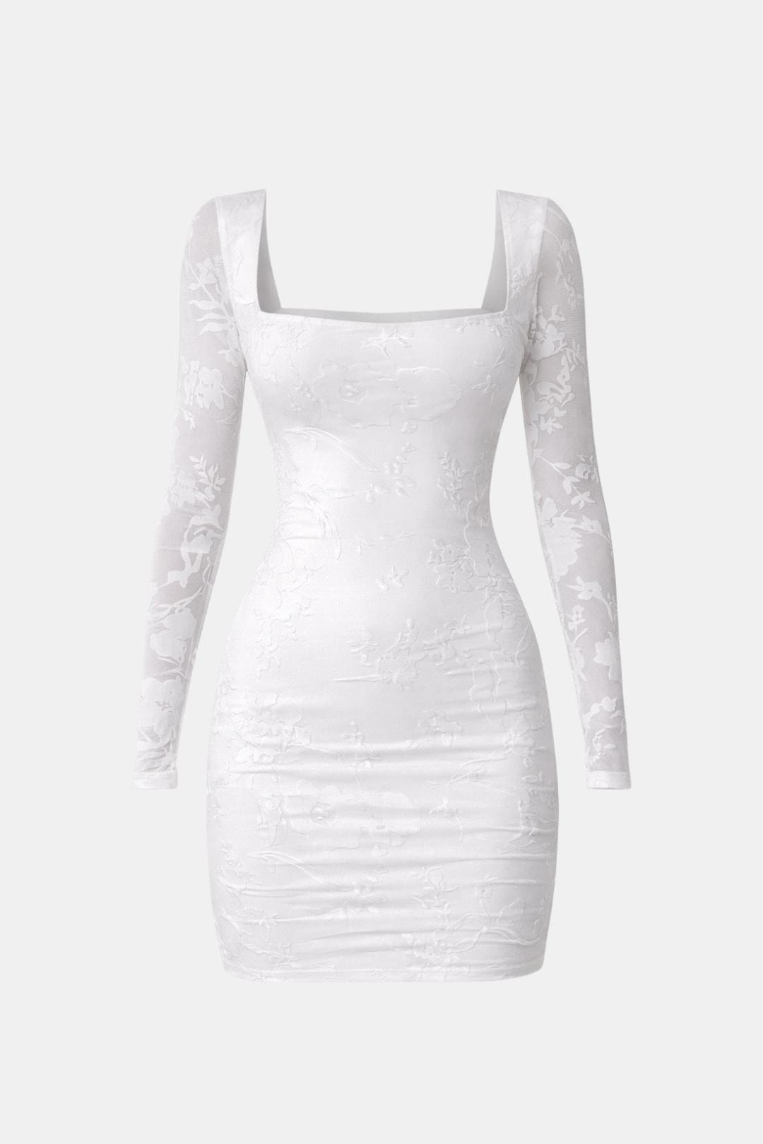 Miranda – Square-Neck Long Sleeve Lace Mini Dress