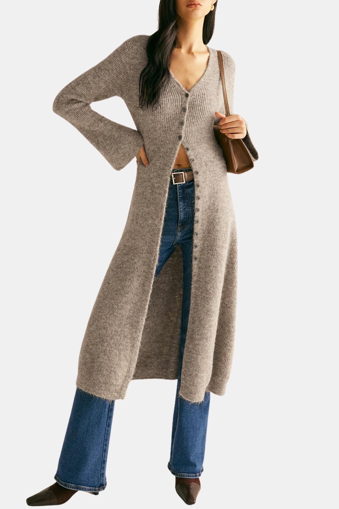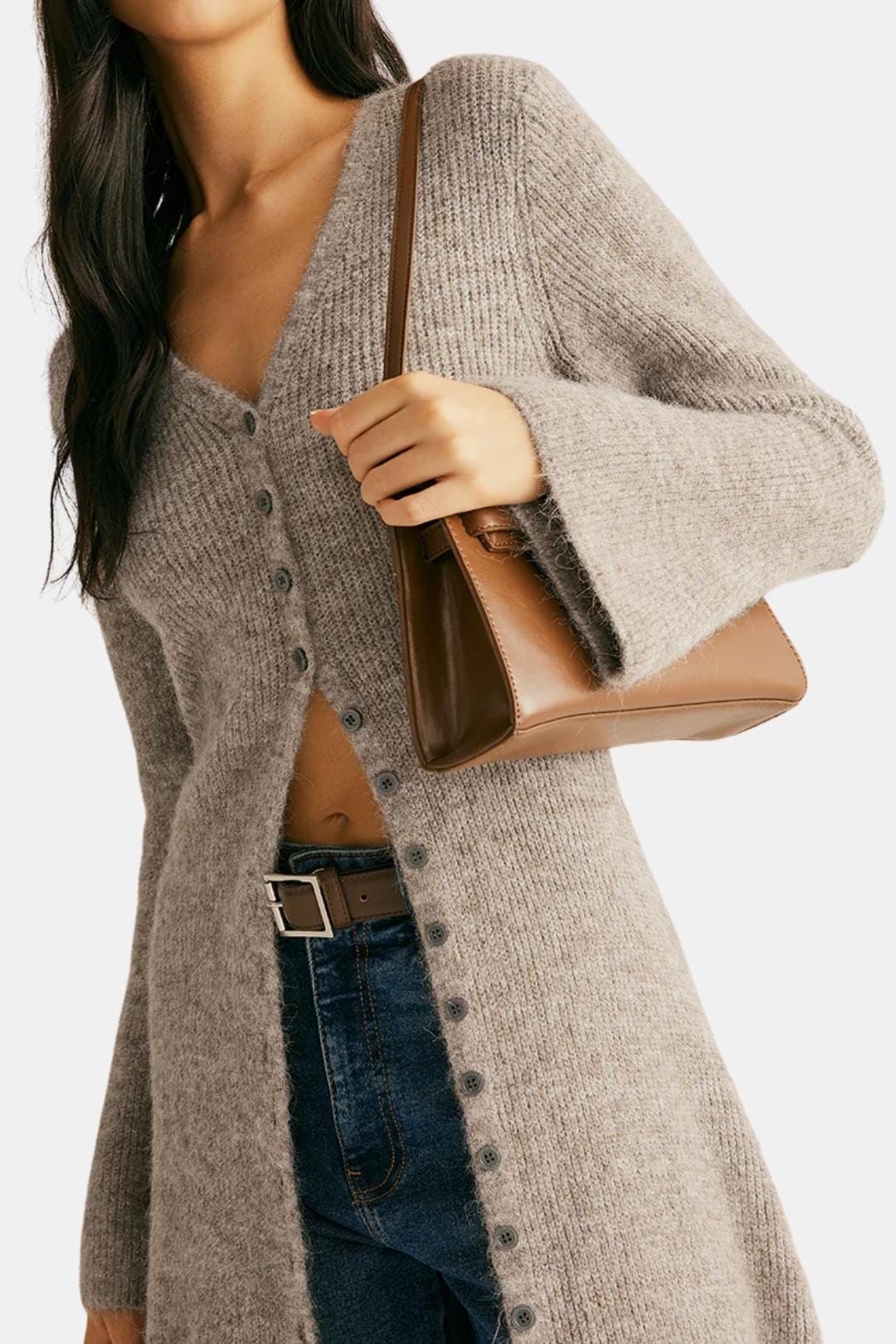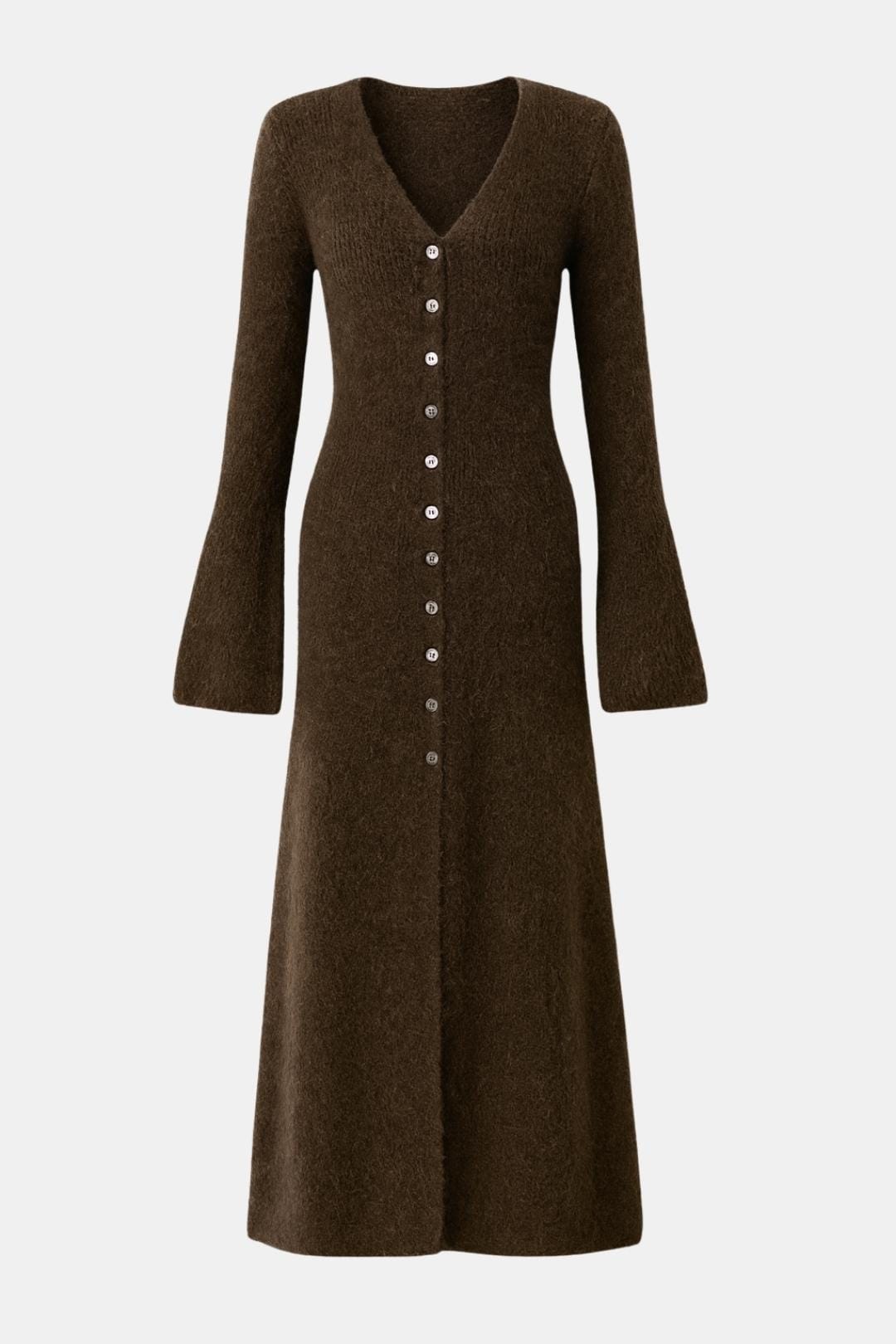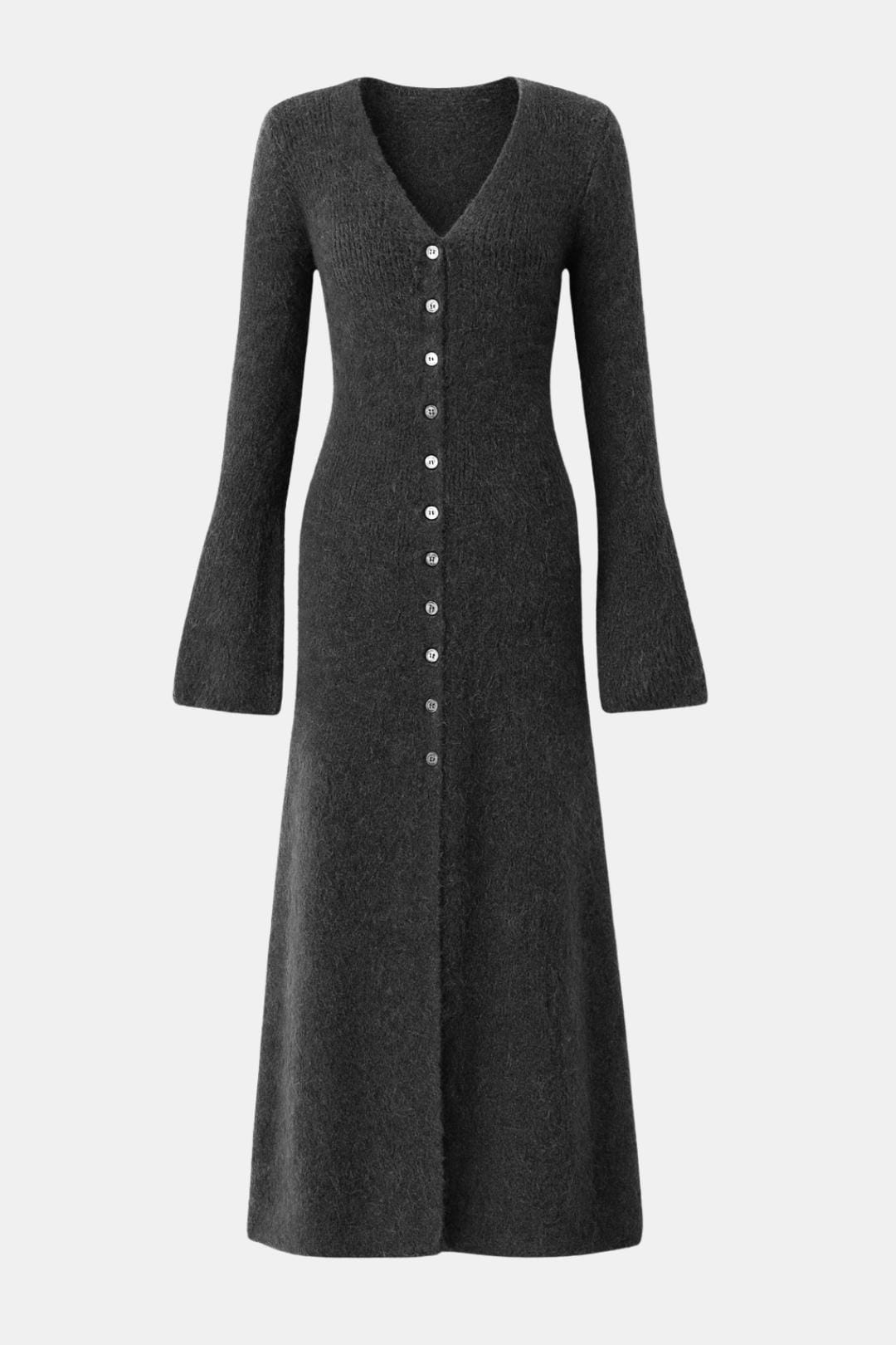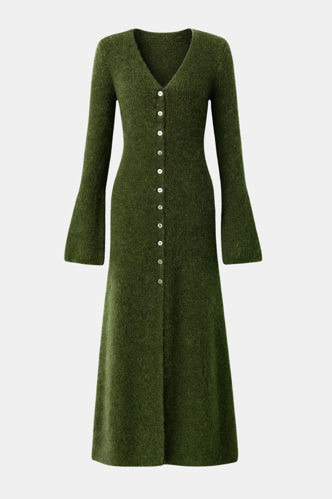 Giselle – V-Neck Button-Down Knit Sweater Dress
