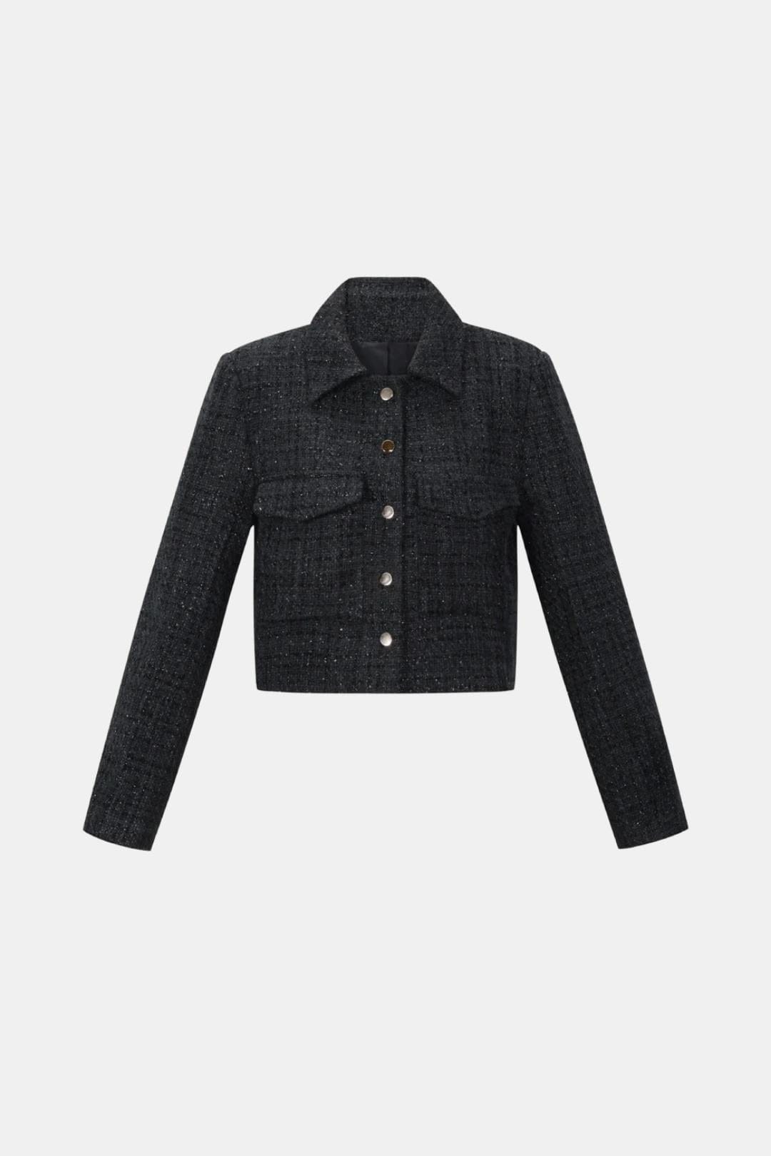 The Helena – Textured Cropped Button Jacket delivers a sleek, structured look with its modern cut and premium textured feel. Perfect for elevating everyday outfits or adding polish to evening wear.