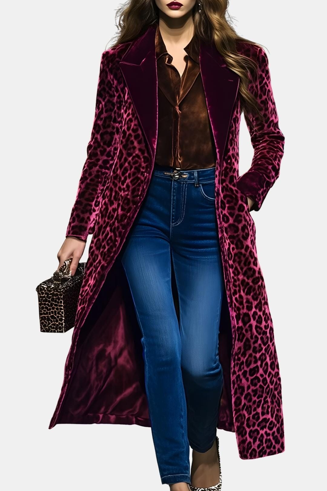 • Bold Leopard Print: A daring pattern balanced by timeless tailoring for a confident, high-fashion aesthetic.