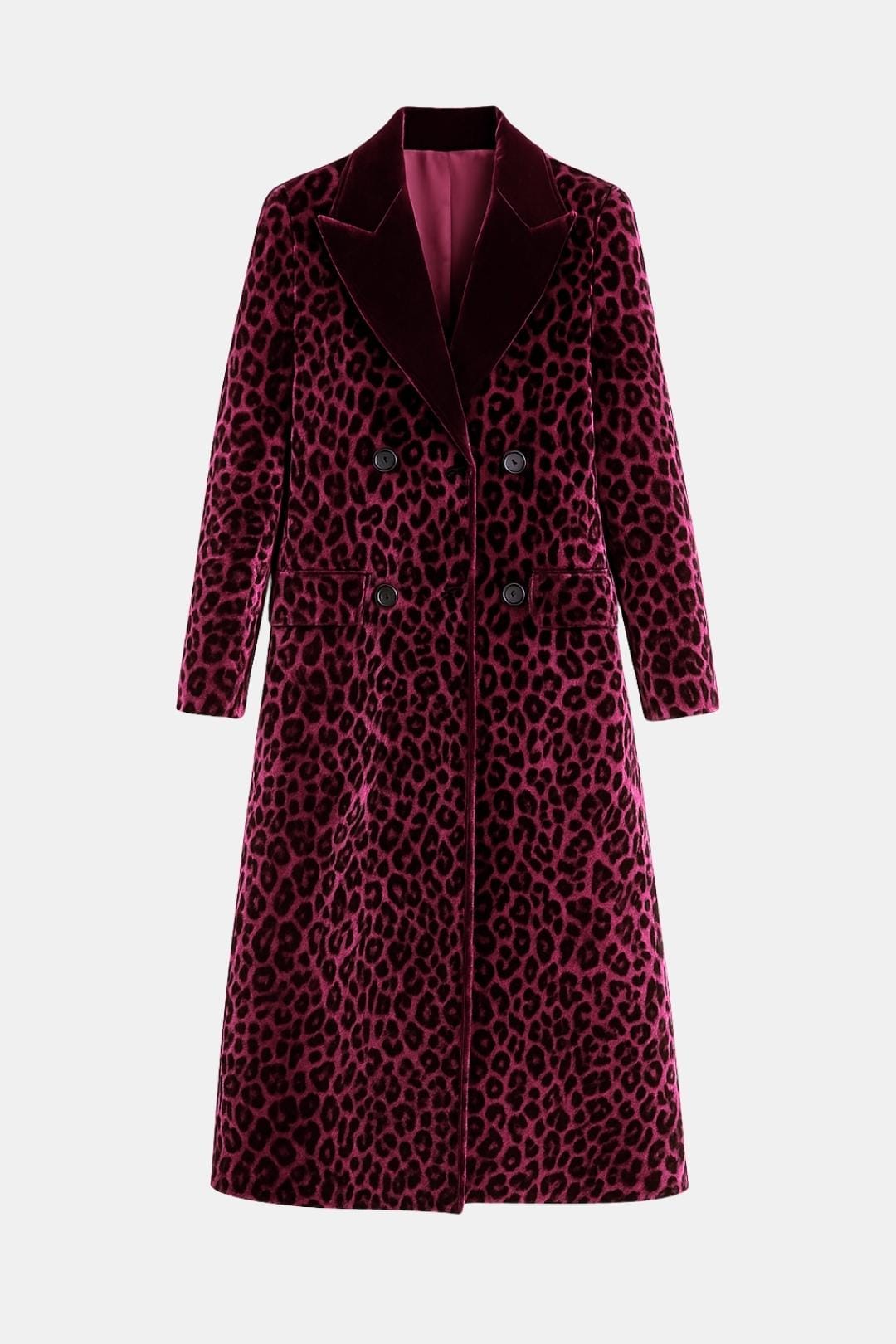 Kali – Velvet Leopard Print Long Lapel Coat
