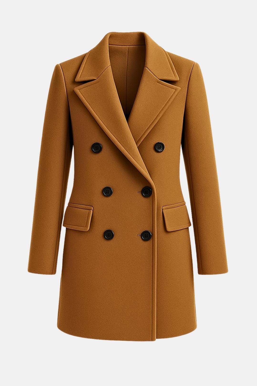 Tessa – Double-Breasted Mid-Length Coat in Brown
