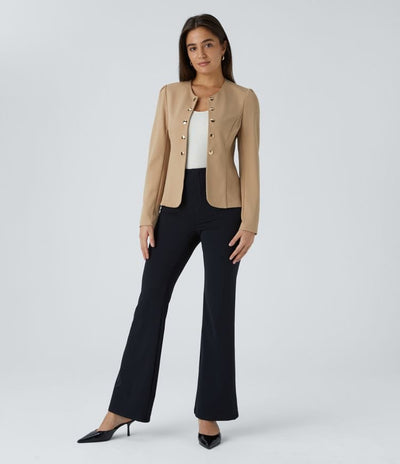 Tailored Blazer: This military-inspired blazer combines fine and modern design. With its sleek fit, gold button detailing, and timeless silhouette, it’s the ideal piece to make a casual statement wherever you go.